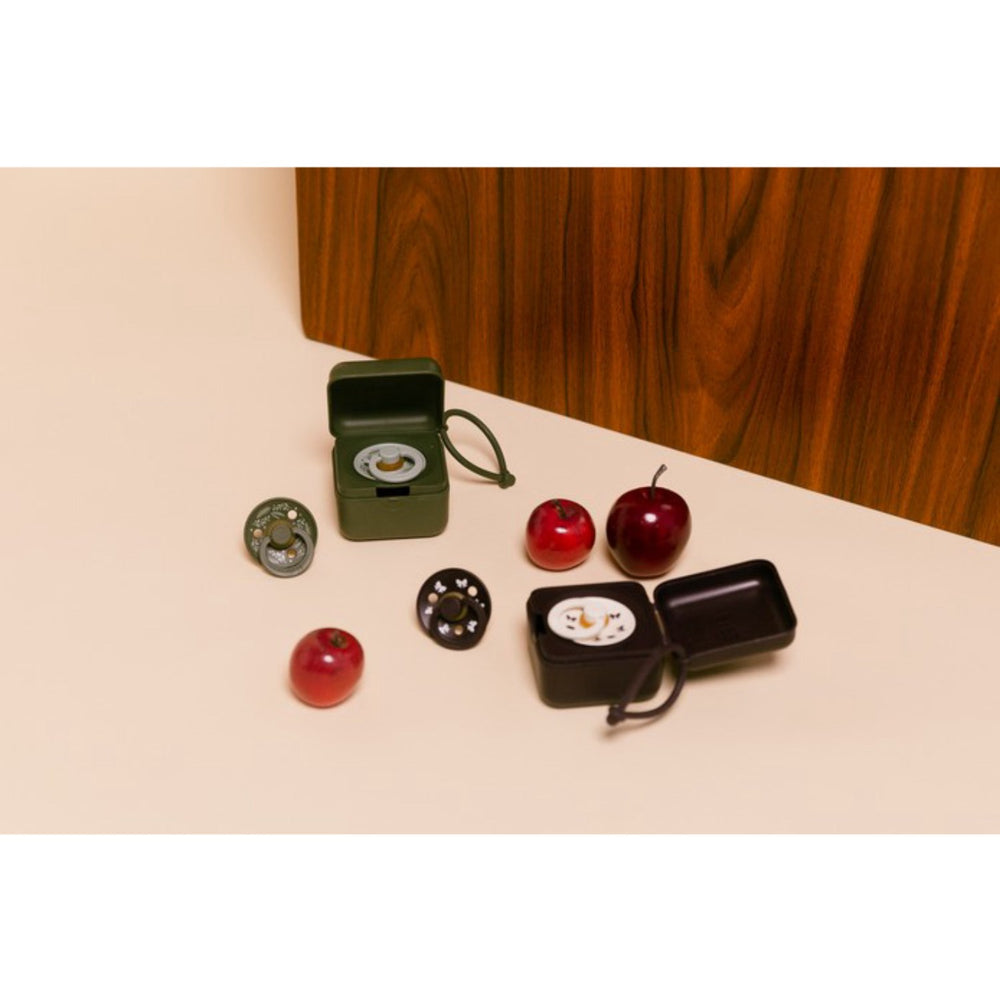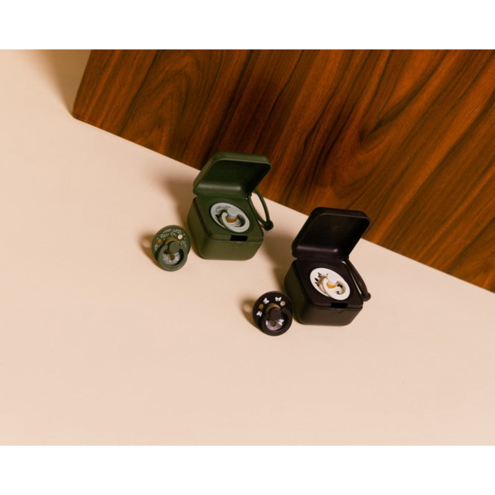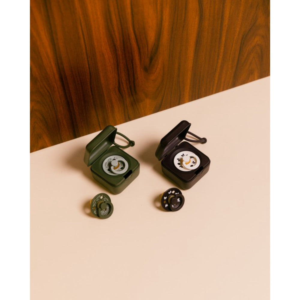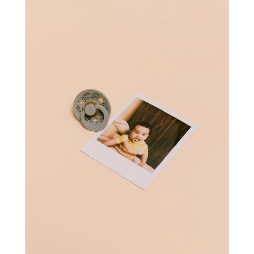 Introduce your little one to the comfort and reliability of the BIBS Colour Pacifier, trusted by parents for over 40 years. Designed with a signature round, BIBS shield featuring three vent holes for enhanced air flow, and a round handle elegantly engraved with the BIBS logo, these pacifiers are not only stylish but also built with your child's safety in mind. Made from 100% natural rubber latex, the nipple is available in various shapes to suit your baby’s preference, including round, flat symmetrical, and anatomical options. The shield consists of food-grade material, ensuring it's completely safe as it's 100% free from BPA and phthalates. All materials meet the stringent European Standard EN 1400+A2. Practical and easy to use, these pacifiers provide ultimate comfort and oral satisfaction for babies while being easy for parents to maintain. Additionally, the pacifiers are easy to store and organized, fitting effortlessly into your daily routine. Available in a soothing Sage/Hunter Green color, this 2-pack not only meets all your baby’s comfort and safety needs but also stimulates with its appealing design, keeping your little one content and engaged. Discover the perfect blend of safety, functionality, and aesthetic appeal with the BIBS Colour Pacifier. Materials: Natural Rubber Latex
