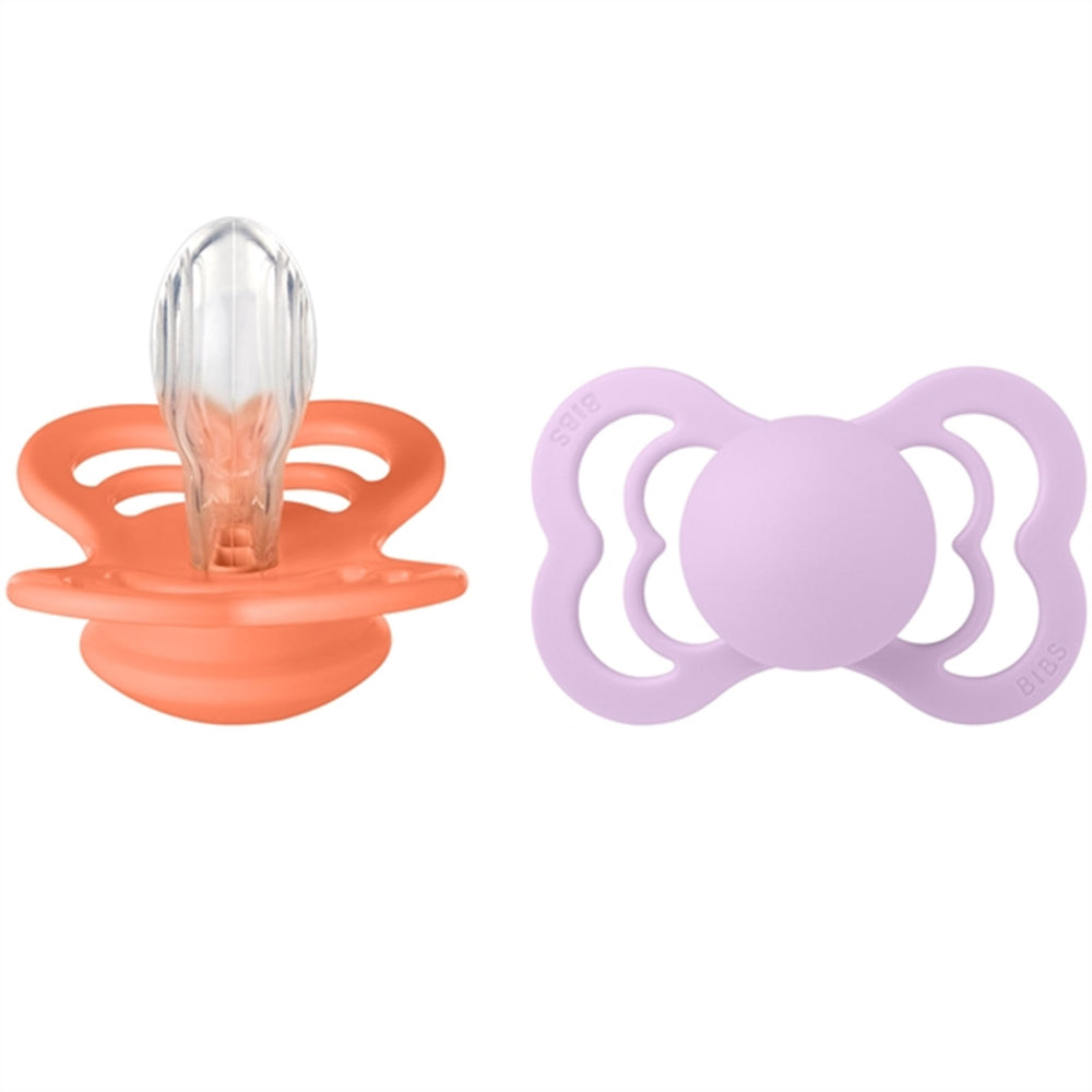 Bibs Supreme Silicone Pacifier 2-pack Symmetrical Papaya/Violet Sky
