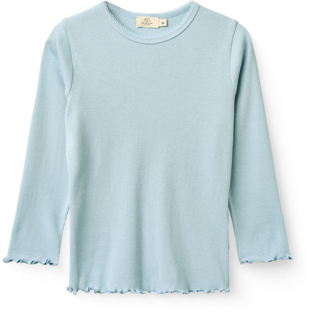 COPENHAGEN COLORS Dusty Blue Modal Rib Ls Tee W. Picot