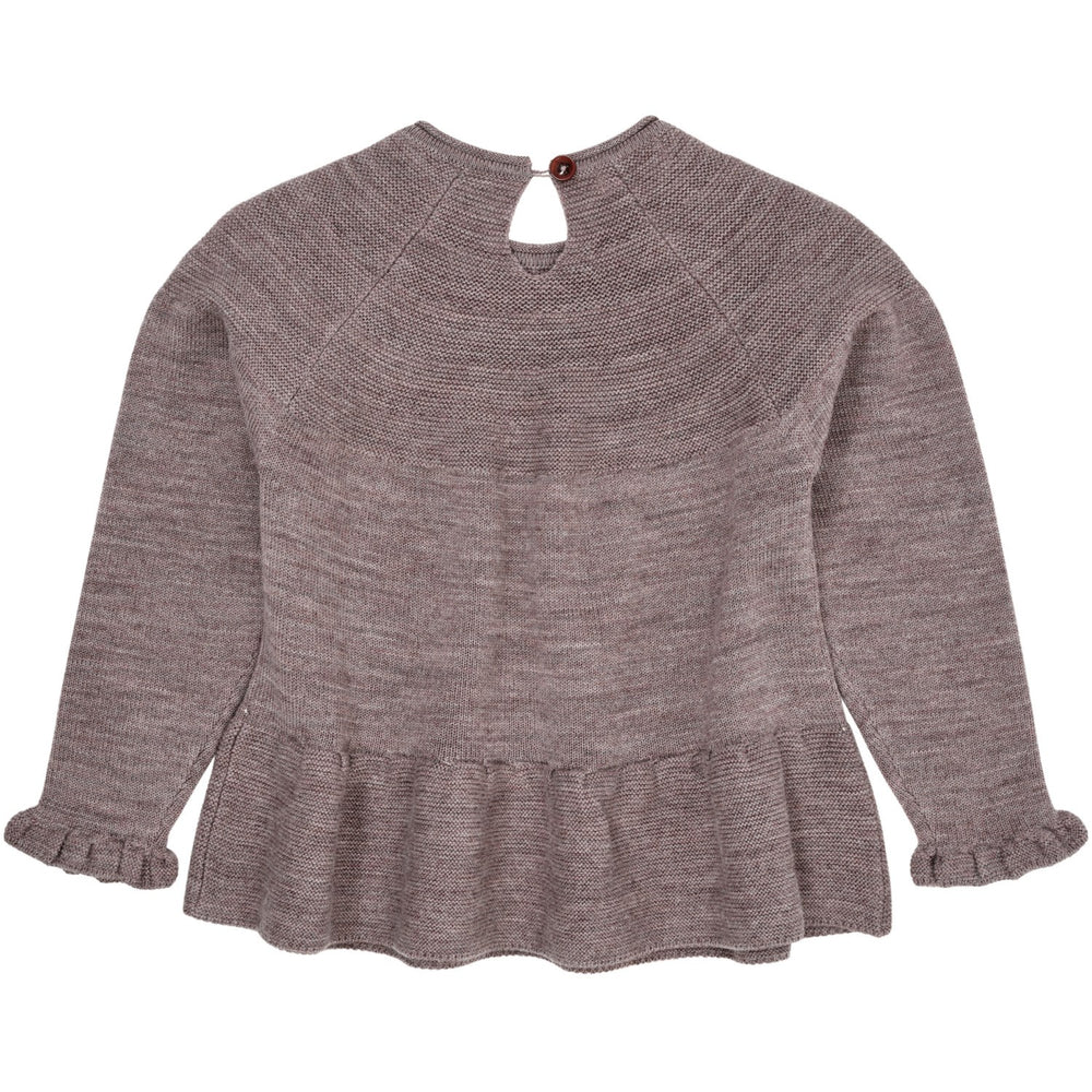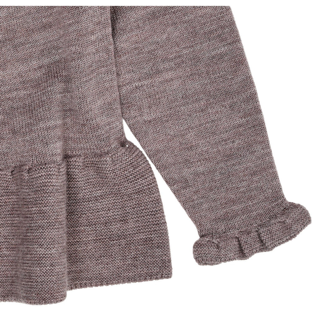 Dress your little one in the embrace of cozy warmth with our Copenhagen Colors Natural Melange Merino Knit Blouse. Perfectly crafted in 100% pure merino wool, this adorable blouse features delightful frills and offers unmatched comfort and style. Ideal for playful adventures or cozy cuddles, it’s a must-have winter essential for every stylish young girl. Adorned with a chic knit pattern, it’s destined to become her favorite. Care and love in every stitch! (100% merino wool)