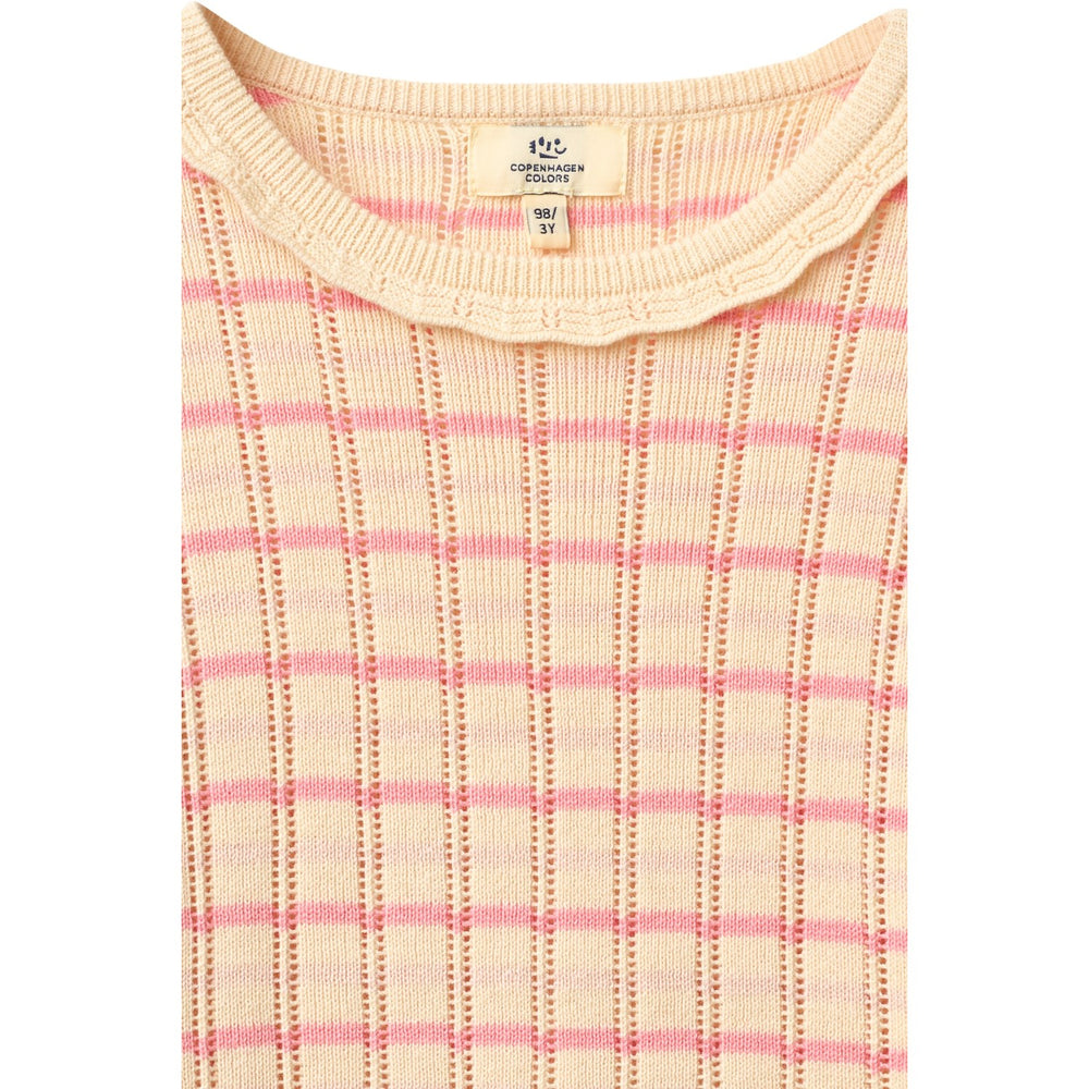 COPENHAGEN COLORS Pink Comb. Knitted Stripe Pointelle Ls Blouse