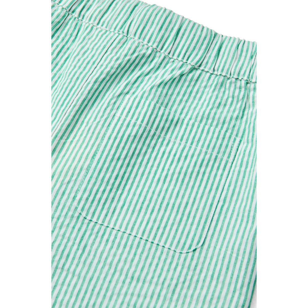 Introducing the Copenhagen Colors Sharp Green W Cream Stripe Seersucker Pajama Pants for your little one's stylish and comfortable nights. Made from lightweight, 100% GOTS-certified organic cotton, these seersucker pants feature a fresh green and cream stripe design. The relaxed silhouette combined with an elastic drawstring waist promises a perfect fit and ease of movement. Plus, side pockets add a practical touch. Ideal for summer, they are as breathable as they are charming. Perfect for both sleep and playful lounging around the house. Materials: 100% Organic Cotton Certifications: Gots