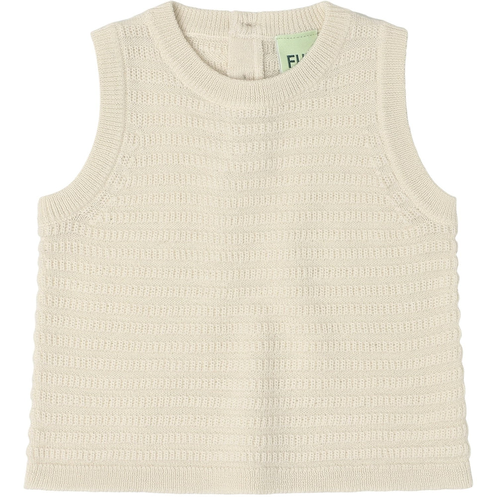 Enhanced with an innovative eco-friendly treatment, this vest maintains its shape and softness even after machine washing, without the need for chlorine and other halogens. It's not just a vest, it's a blend of comfort, style, and ethical manufacturing that reflects your love and care for your child and the environment. Ideal for layering, the FUB Ecru Baby Vest can be paired with various outfits, providing both warmth on chilly days and adding a touch of style to any occasion. Materials: 100% Merino wool
