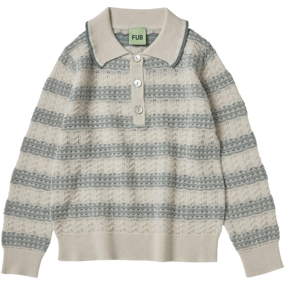 Dress your little explorer in cozy sophistication with our FUB Ecru/Misty Green Pointelle Polo. Crafted from 100% certified merino wool, this charming long-sleeved polo features a delightful two-toned pointelle knit, complete with a neat shirt collar edged in contrasting hues. The front placket, adorned with pearl shell buttons, adds a touch of classic elegance. Designed for ease, this polo is machine washable thanks to eco-friendly treatment, ensuring it's not only stylish but also practical for everyday adventures. Perfect for a playful yet polished look!