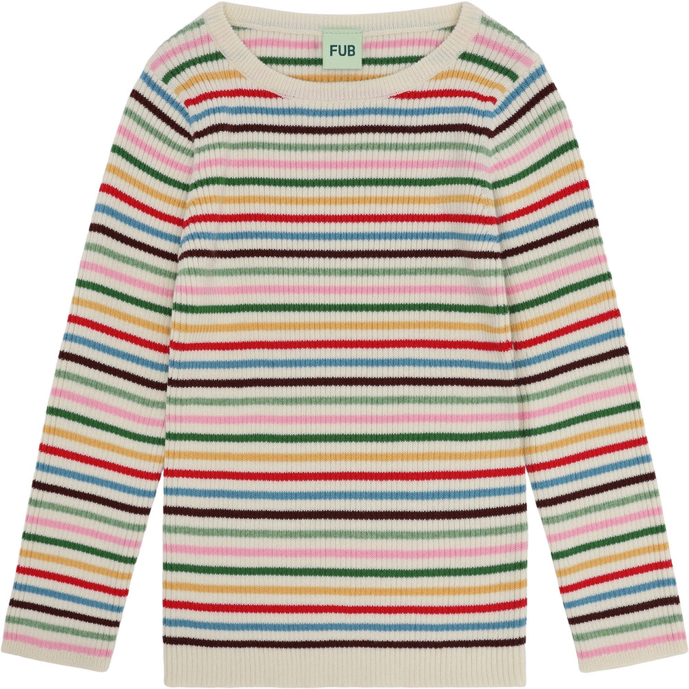 Introduce a touch of timeless elegance to your child's wardrobe with the FUB Multi Stripe Rib Blouse. Expertly knitted in a firm rib structure, this long-sleeved blouse flaunts a straight slim fit ideal for comfortable wear. It features a classic crew neckline enhanced with rib trim and a clean self-edge finish at the sleeves and bottom, ensuring a neat look.