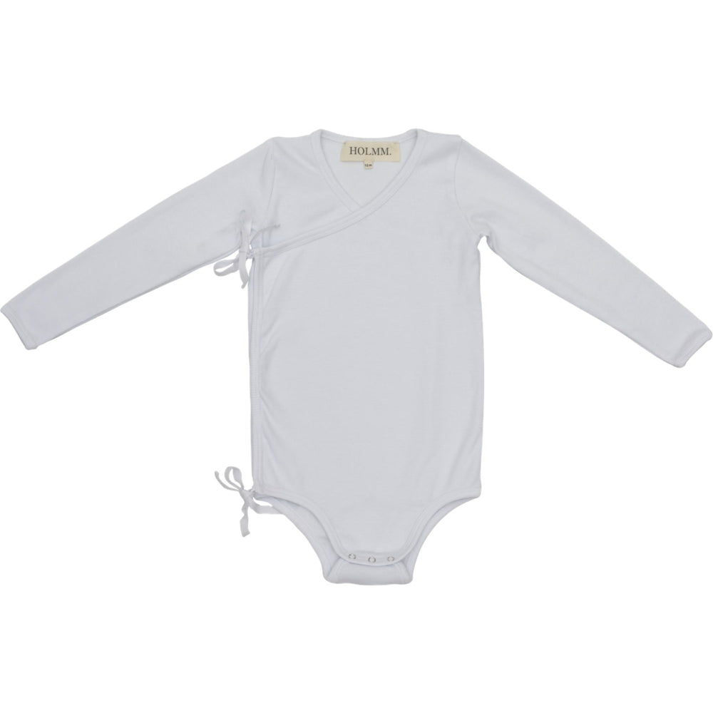 Dress your little one in the cozy comfort of the HOLMM White Jiro Cotton Onesie, perfect for both babies and toddlers. This long-sleeve onesie is made from high-quality organic cotton jersey, which is soft to touch and gentle on sensitive skin. Its ribbed texture not only adds an elegant touch but also enhances durability, ensuring it withstands frequent washes and wear. Featuring a practical wrap front design, this onesie makes dressing and undressing fuss-free — a boon for busy parents. The press-button closure at the hem secures the garment in place, while the neatly bound edges and a dainty bow on the neckline inject a dash of charm. Available in a serene white shade, it effortlessly matches with other garments to create stylish yet comfortable outfits. Its flexible fit and breathable fabric promise all-day comfort, making it an ideal choice for playdates, nap times, and everything in between. With its blend of function, comfort, and adorable design, the HOLMM White Jiro Cotton Onesie is a must-have staple for your child's wardrobe.