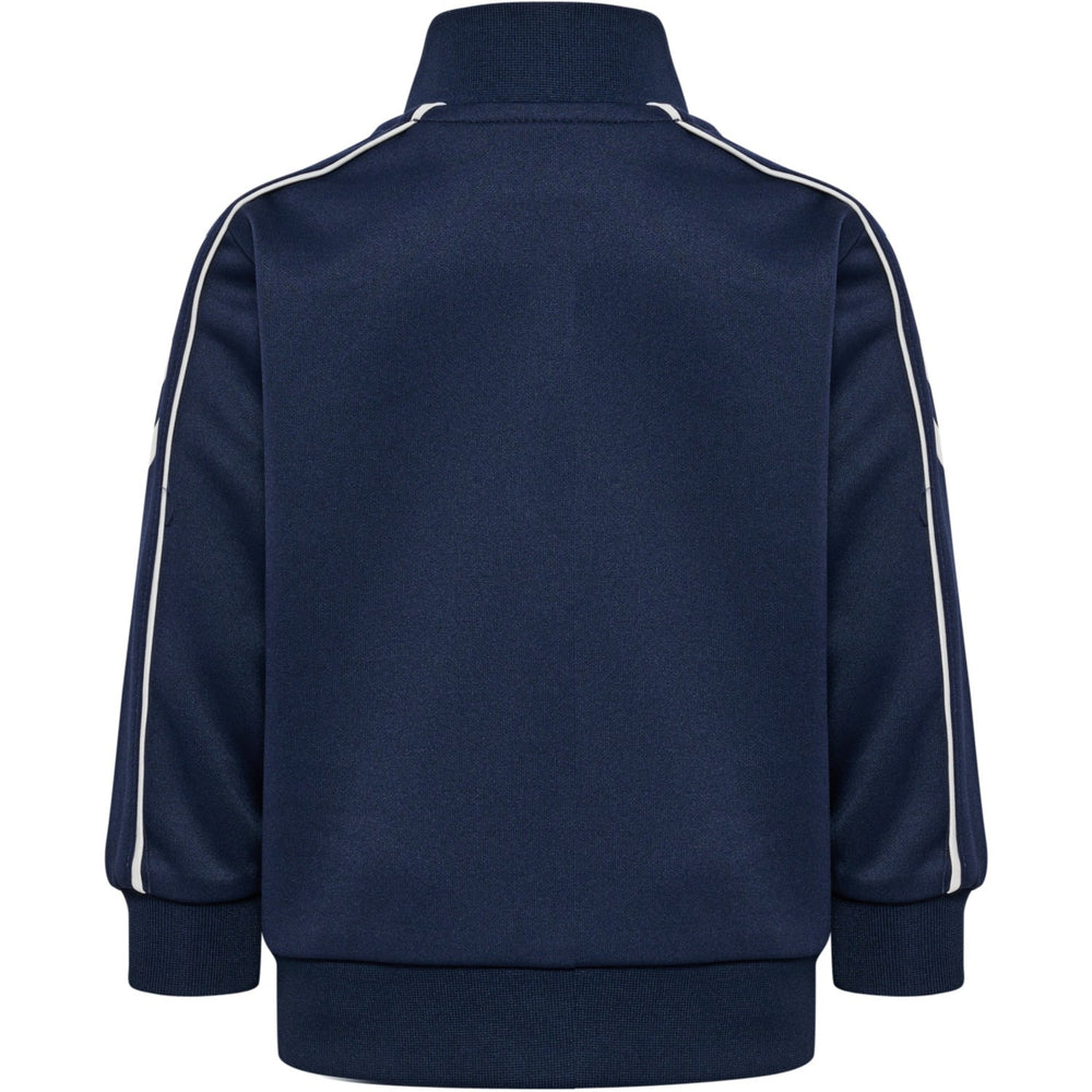 The perfect set for active kids! The hmlTRACK TRACKSUIT MINI is designed for play and movement. The set includes comfortable training pants and a matching zip top, both made from soft interlock material. The full zip on the front of the shirt is equipped with a practical protection at the chin so that nothing rubs or bothers you. With an iconic hummel logo on the chest and the classic chevrons on both the trousers and jersey, your little one is ready for action in style. The waist of the pants has a drawstring that guarantees a perfect fit for all adventures.