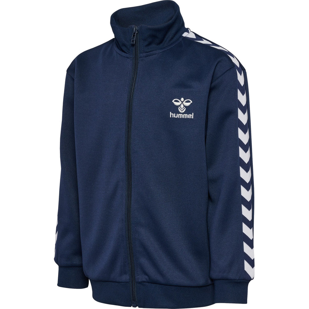 Ready for adventure? The hmlXIT ZIP JACKET is perfect for play and fun. This chic cardigan in black is made from a soft, stockinette stitch interlock fabric that feels comfortable against the skin. With a cool embroidered Hummel logo on the chest and the characteristic angle tape on the sleeves. The full-length zipper ensures easy dressing and at the same time protects the little chins with a smart zipper edge. A must-have in every fashion-conscious toddler's wardrobe!