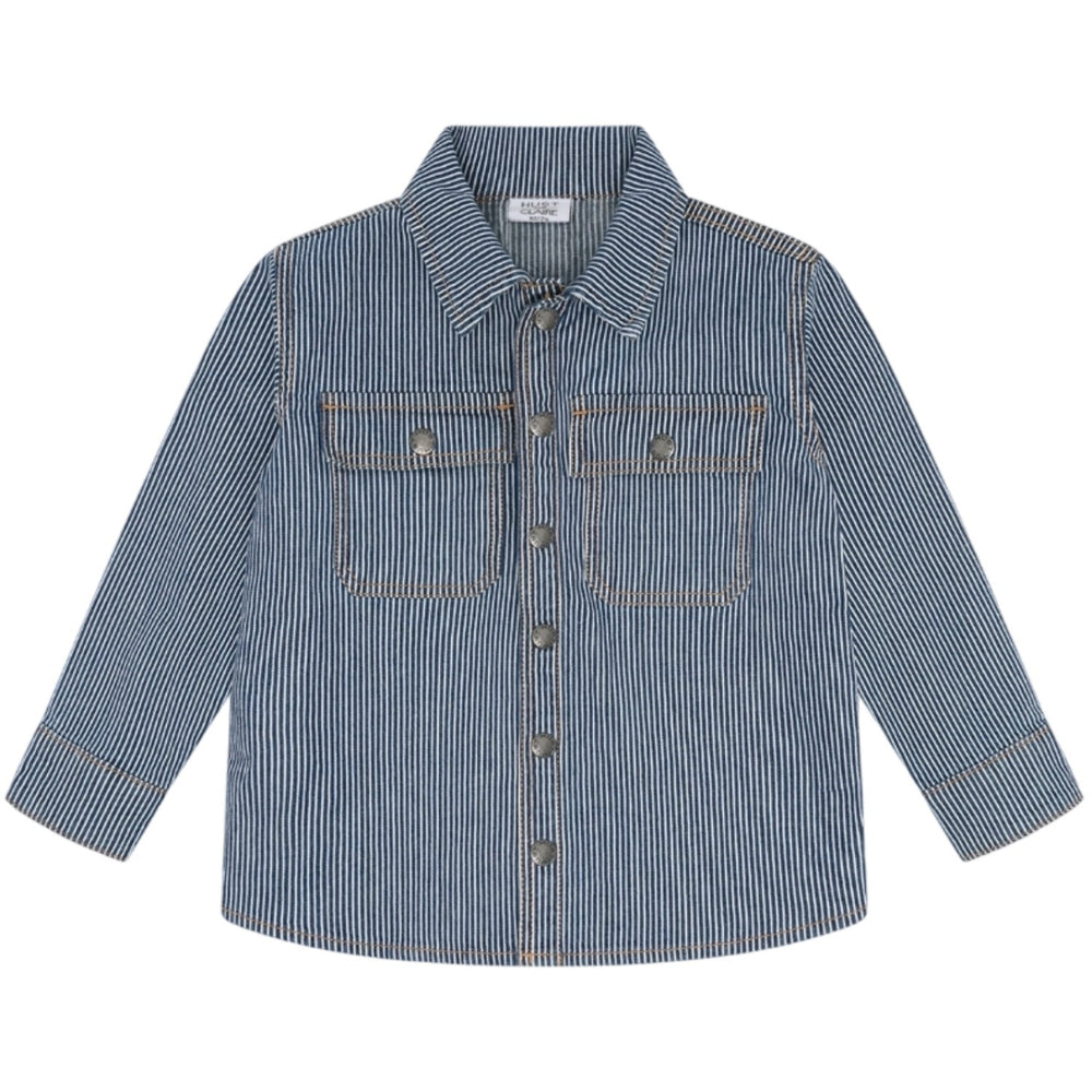 Dress your little one in the timeless charm of the Hust & Claire Blue Denim Jack Yd Stripe Shirt. Crafted from soft, durable denim, this shirt features a delightful yarn-dyed stripe pattern, sure to catch the eye. The relaxed fit ensures comfort for all-day wear, and it's easy to care for, making it a practical addition to any child's wardrobe. Perfect for both casual outings and more dressy occasions, this shirt blends style with functionality effortlessly. Fit: Loose Materials: 98% Cotton, 2% Elastane Washing instructions: 40°. Do Not Dry Clean. Do Not Bleach. Do Not Tumble Dry. Iron At A Maximum Sole-Plate Temperature Of 150°C