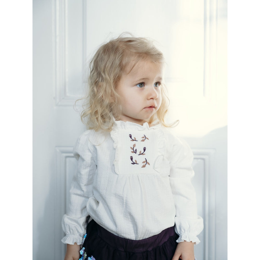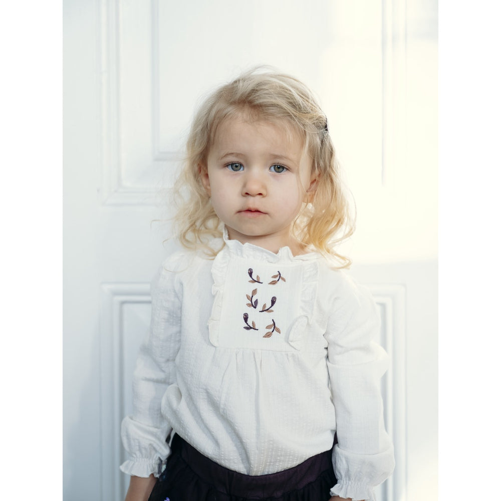 Delight your little one with the Hust & Claire Sugar Alma T-Shirt, perfectly tailored for children who love to play and explore in style. Crafted from soft textured jersey, this long-sleeved T-shirt ensures comfort through all their adventures. The enchanting embroidered leaves on the chest add a touch of whimsy, while ruffled detailing at the collar and down the chest brings a playful flair to its overall aesthetics.