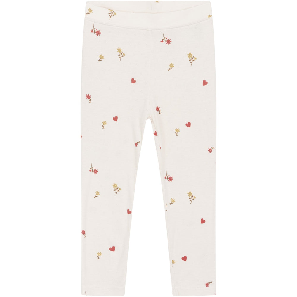Introduce your little one to the delightful comfort of the Hust & Claire White Sand Ludo Leggings, where style meets sustainability. Crafted from soft, stretchy bamboo viscose, these leggings are not only gentle on your child's skin but also environmentally friendly. Adorned with a charming hearts and flowers print and featuring a unique eyelet pattern, these leggings bring a touch of whimsy and fun to any outfit.