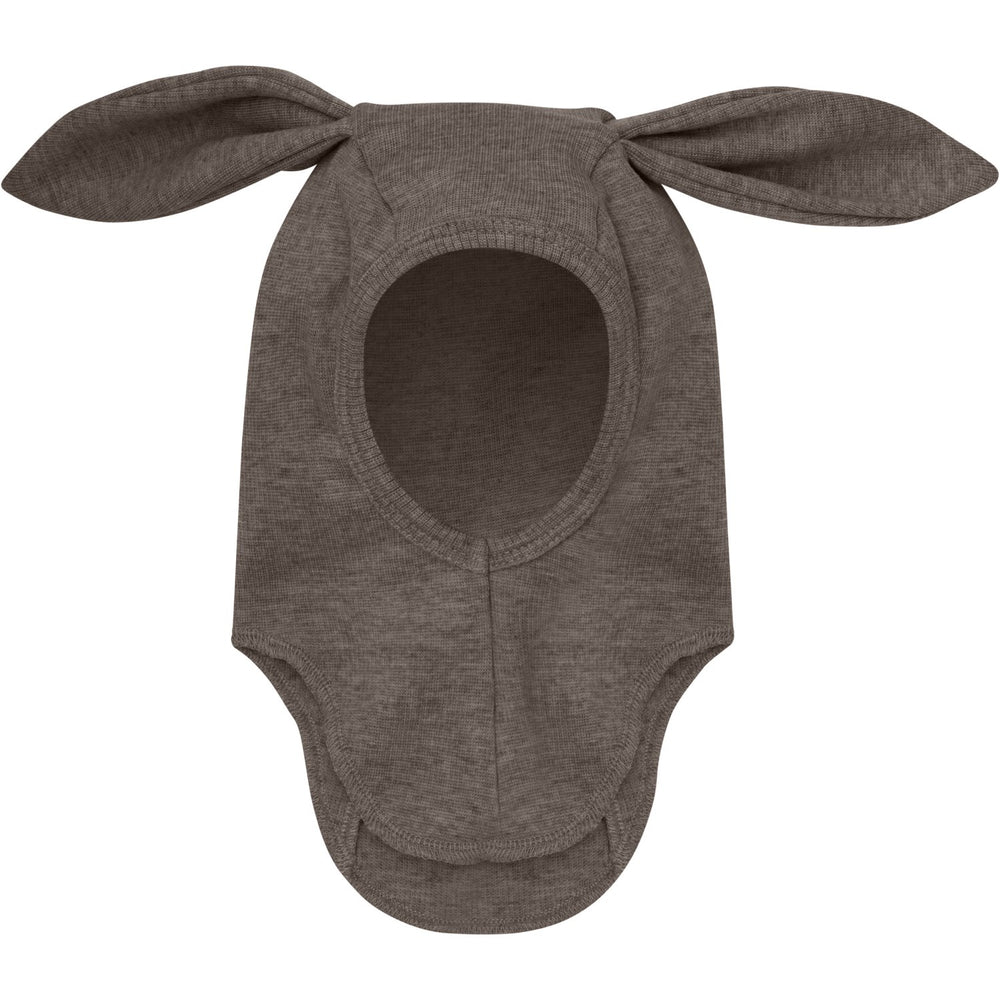 Discover the charm and warmth of the HUTTEliHUT Brown Melange Balaclava Ears Wool Rib, perfect for keeping your little one snug and stylish. Crafted from soft, thin Merino wool in a ribbed texture, this adorable balaclava features whimsical long rabbit ears, enhancing its playful design. Its snug fit is assured by a narrow, elastic ribbed edge around the face, and the practical split at the bottom offers added coverage with extra length at the back for comfort.