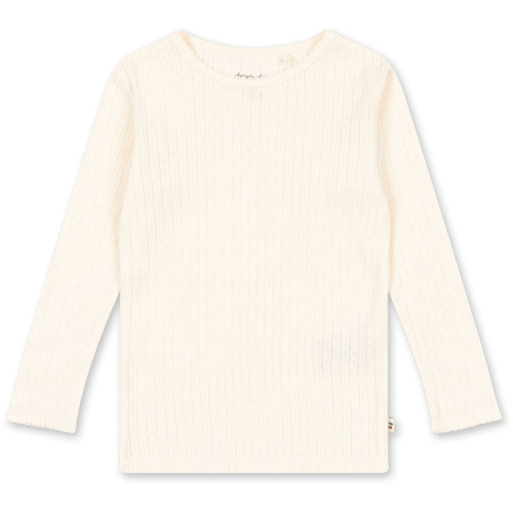 Dress your little one in the comfort and charm of the Konges Sløjd Minnie Blouse in Antique White. Crafted from soft GOTS-certified organic cotton, this blouse features an elegant pointelle design. Its gentle fabric promises a snug fit, making it an essential piece for any child's closet. Ideal for layering, this blouse blends functionality with style, perfect for everyday wear. Materials: 100% ORGANIC COTTON Certifications: GOTS ORGANIC