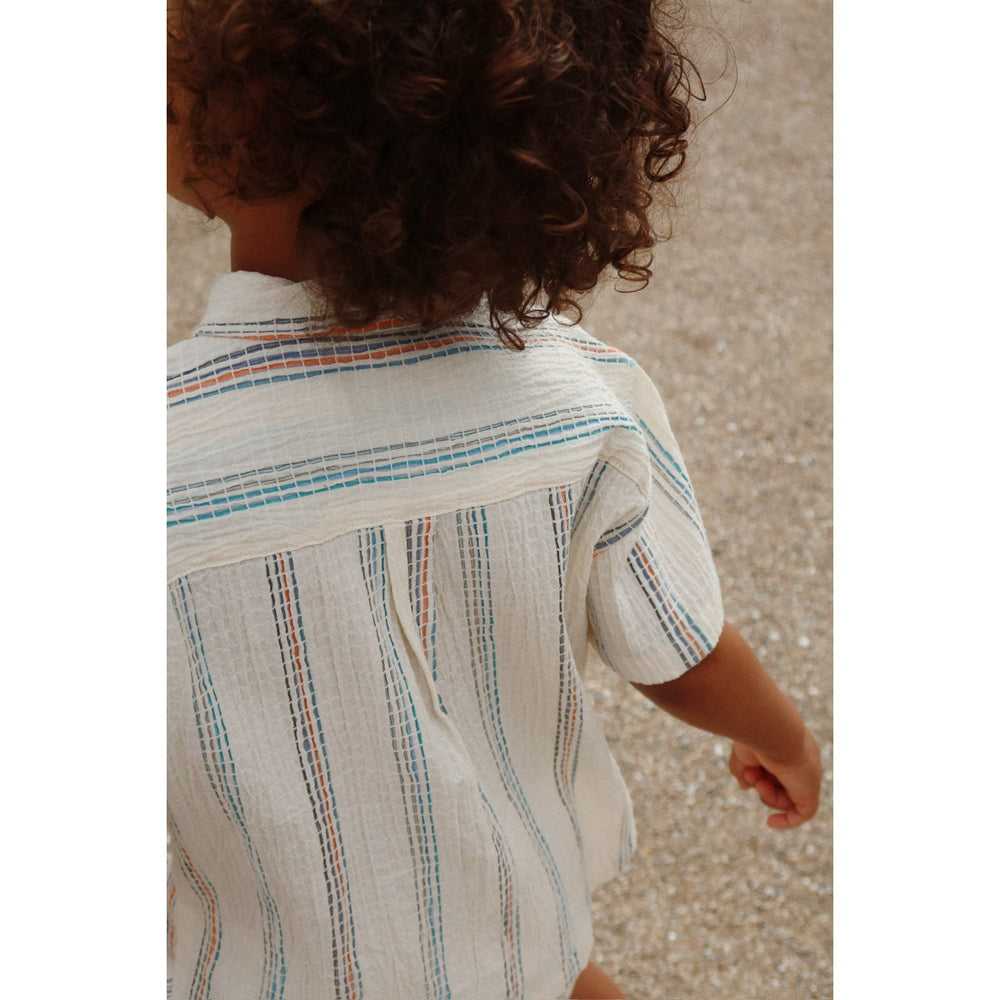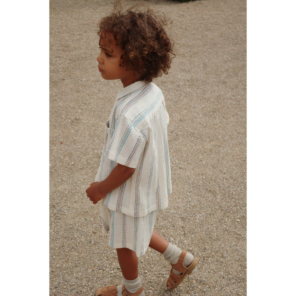 Discover the charm of our Konges Sløjd Antique White Vincent SS Shirt, perfect for your little one’s wardrobe. Crafted from 97% organic cotton and 3% elastane, this short-sleeved seersucker shirt is not only stylish with its regular collar and chest pocket, but also incredibly comfortable and stretchy. The soothing antique white hue and subtle texture add a touch of elegance, making it an ideal choice for any occasion. Certified by CU1094701, it meets the highest standards of organic and ethical production, ensuring you are choosing the best for your child. This shirt promises durability and ease of care which is perfect for both everyday wear and special events.