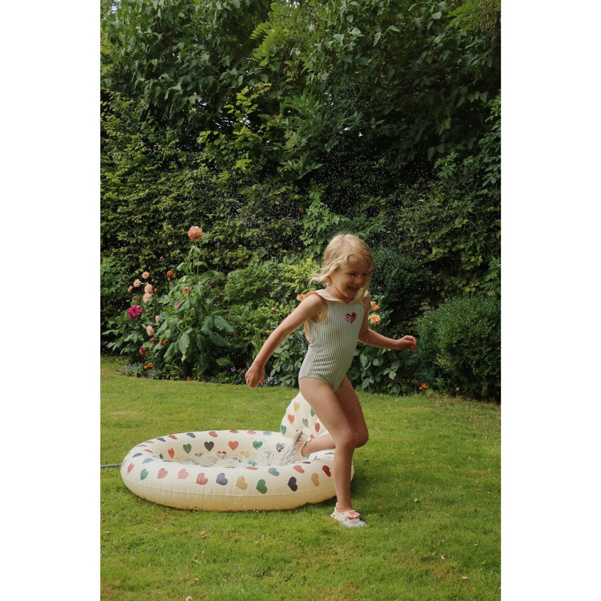 Introducing the Konges Sløjd Blue Stripe Gina Swimsuit! Dive into summer with this charming swimsuit featuring comfortable stretch and a delightful blue stripe design. Crafted from 80% GRS-certified recycled polyester and 20% elastane, it promises durability and snug fit. CE-certified for safety and quality, it's perfect for endless poolside fun and beach adventures, ensuring your little one stays comfortable and stylish. Easy care adds convenience to its many delights!