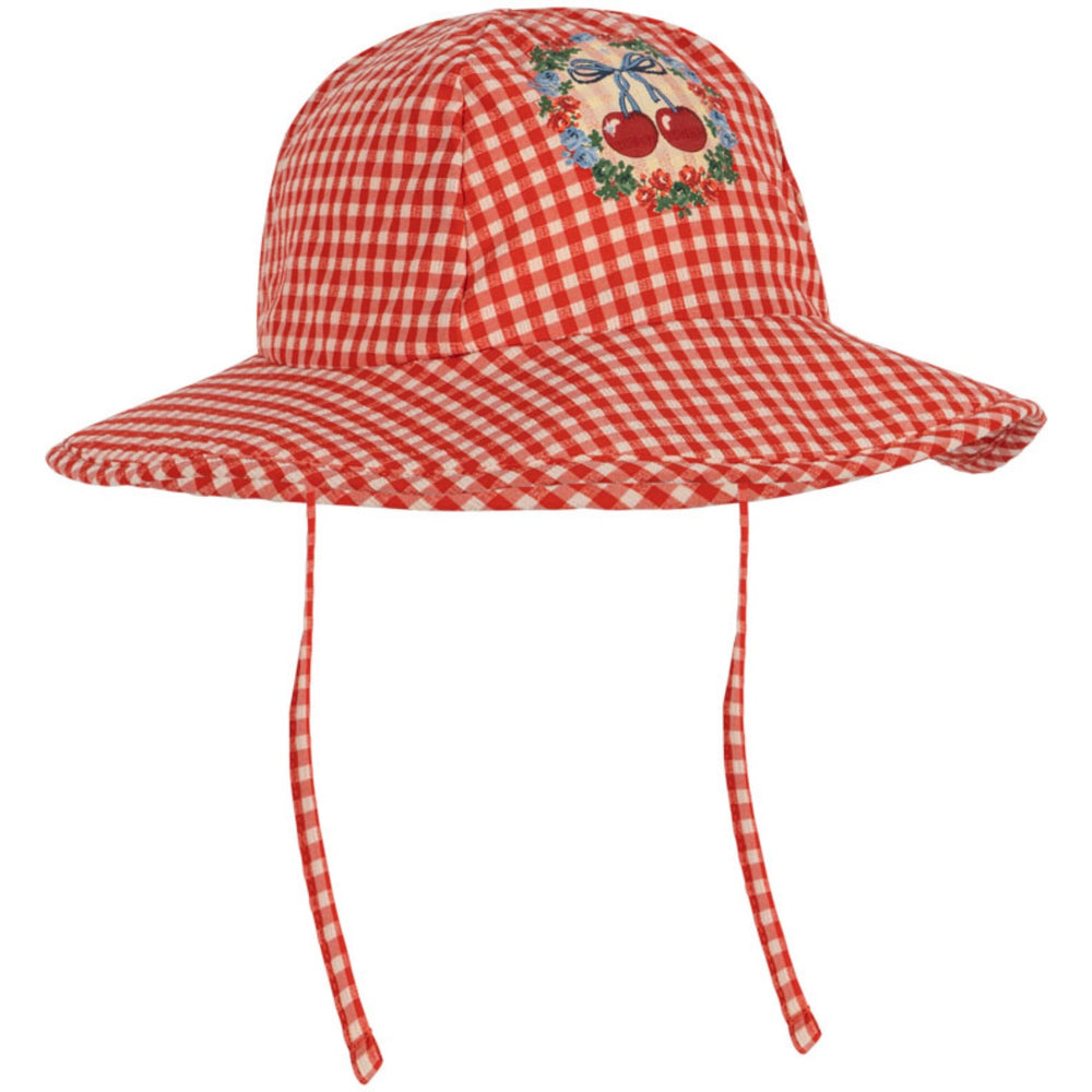 Introducing the Konges Sløjd Fiery Red Soline Swim Hat, perfect for your little one's sunny adventures! Crafted from a cozy mix of nylon, polyester, and elastane, this soft seersucker sun hat features a padded brim for extra comfort. Its vibrant fiery red color and chic design enhance any swimwear ensemble, while the practical under-chin strings ensure a secure fit. Durable yet easy to care for, this swim hat is ideal for endless fun under the sun, whether at the beach or pool.