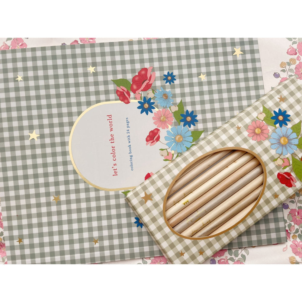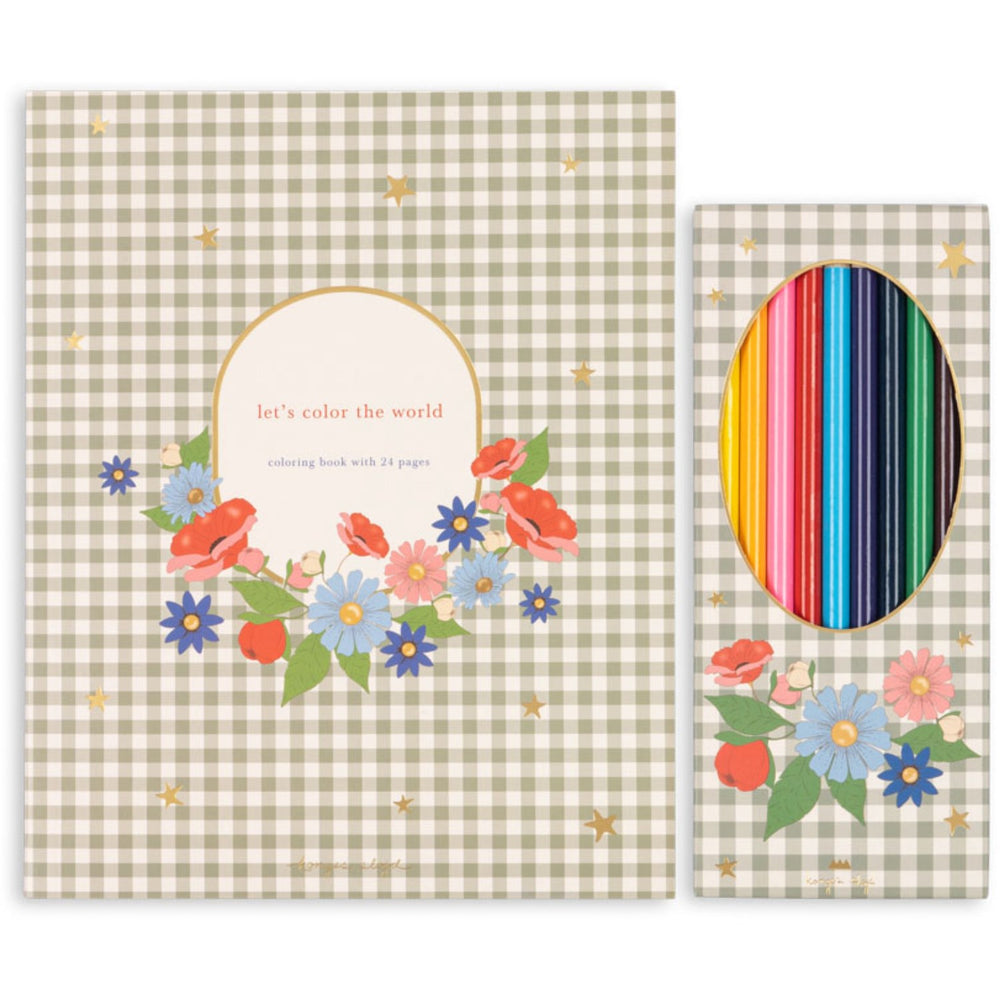 Konges Sløjd Green Tea Check Coloring Book And Color Pencils Fsc