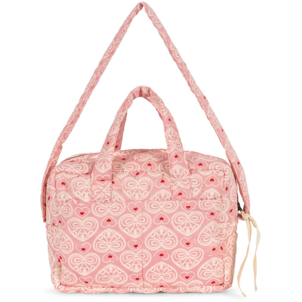 Discover the delightful Konges Sløjd Lacy Pink Doll Bag, an essential accessory for little doll parents. Crafted with safety and functionality in mind, this doll changing bag is perfect for children aged 3 and up. Featuring a secure zip closure, a large external pocket, a convenient shoulder strap, and an easy-to-carry handle, it makes playtime both fun and safe.