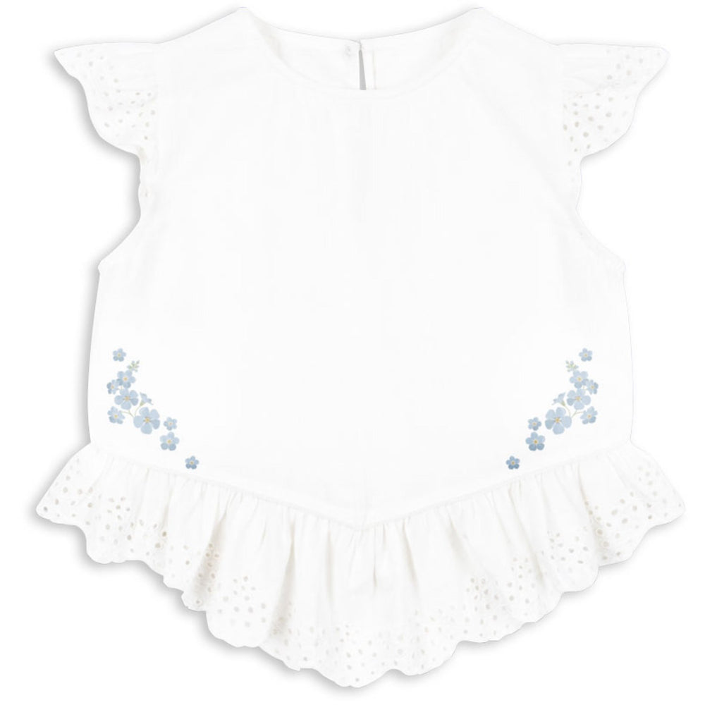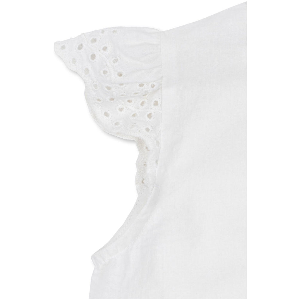 Introducing the Konges Sløjd Fiori Top, your child's new favorite wardrobe staple! Expertly crafted in light 100% organic GOTS-certified cotton poplin, this top features a delightful peplum silhouette accented with intricate broderie anglaise detailing on the hems. Designed for style and supreme comfort, the optic white color and soft fabric ensure wearability for any occasion. Easy to care for and beautifully designed, this top promises to keep your child both comfortable and stylish. Ideal for their daily adventures or special gatherings!