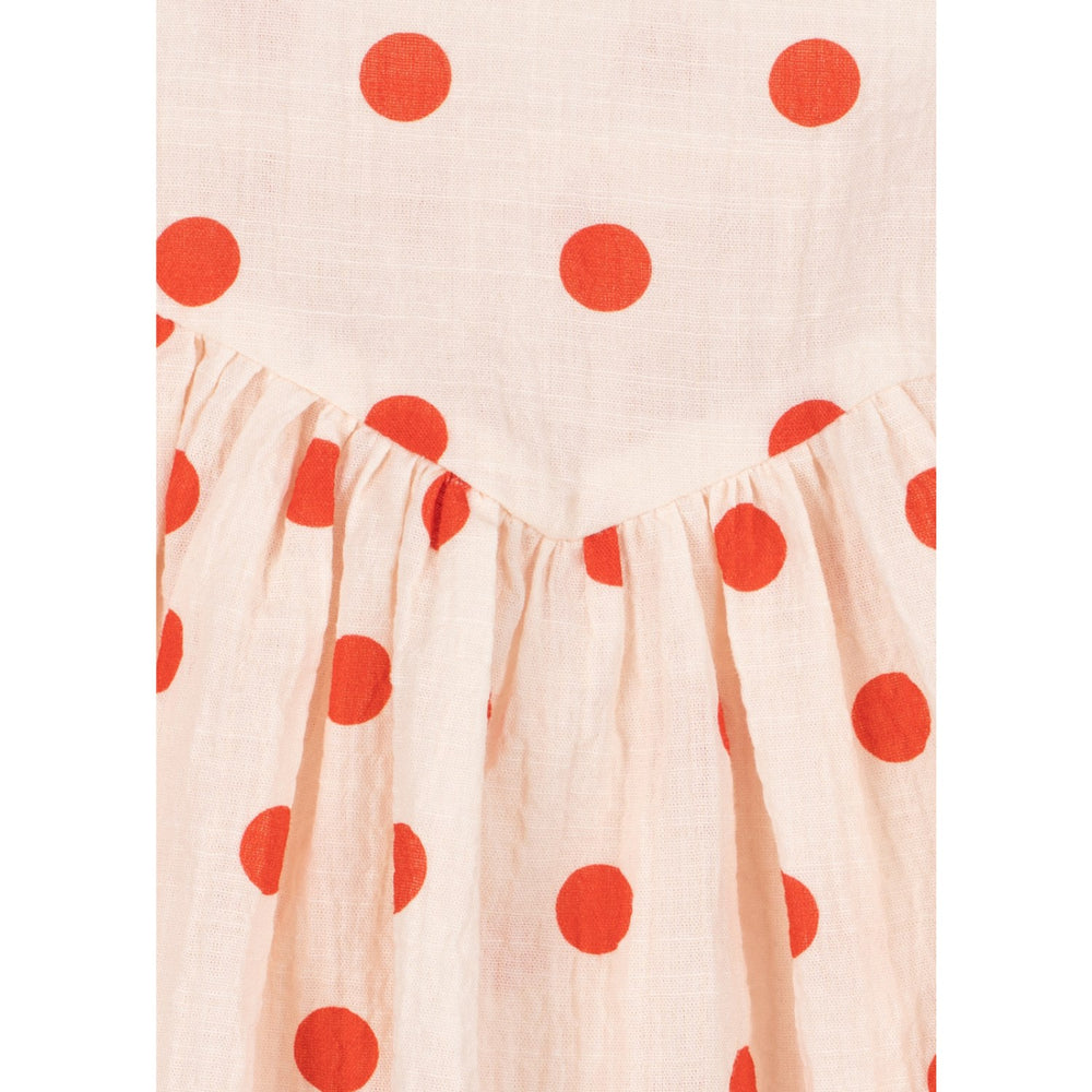 Introducing the charming Konges Sløjd Red Dot Vivo Dress, ideal for the balmy days of summer. This delightful dress, designed with playful decorative dots, features a lovely flared skirt and contrast hems that add a splash of whimsy. Crafted from GOTS-certified organic cotton, it ensures breathability, comfort, and durability. The short sleeves and breathable fabric make it perfect for outdoor adventures or celebratory events, ensuring your little one looks adorable while feeling completely at ease. Certifications: GOTS ORGANIC