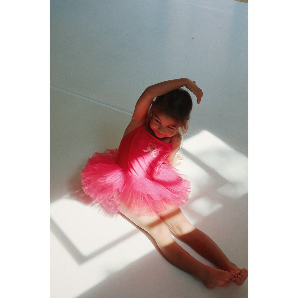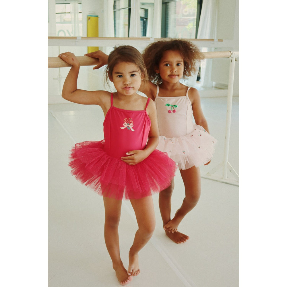 Introduce your little ballerina to the enchanting world of dance with the Konges Sløjd Rose Red Marina Dress. Crafted from a comfortable blend of 82% nylon and 18% elastane, this dress features a stretchy bodice seamlessly leading into a voluminous 100% polyester tulle skirt. The gorgeous rose red color and classic tutu style are perfect for twirling. It's ideal for performances or just playing dress-up, ensuring your child looks adorable while staying comfortable. Easy to care for, this dress promises to be a delightful addition to her wardrobe.