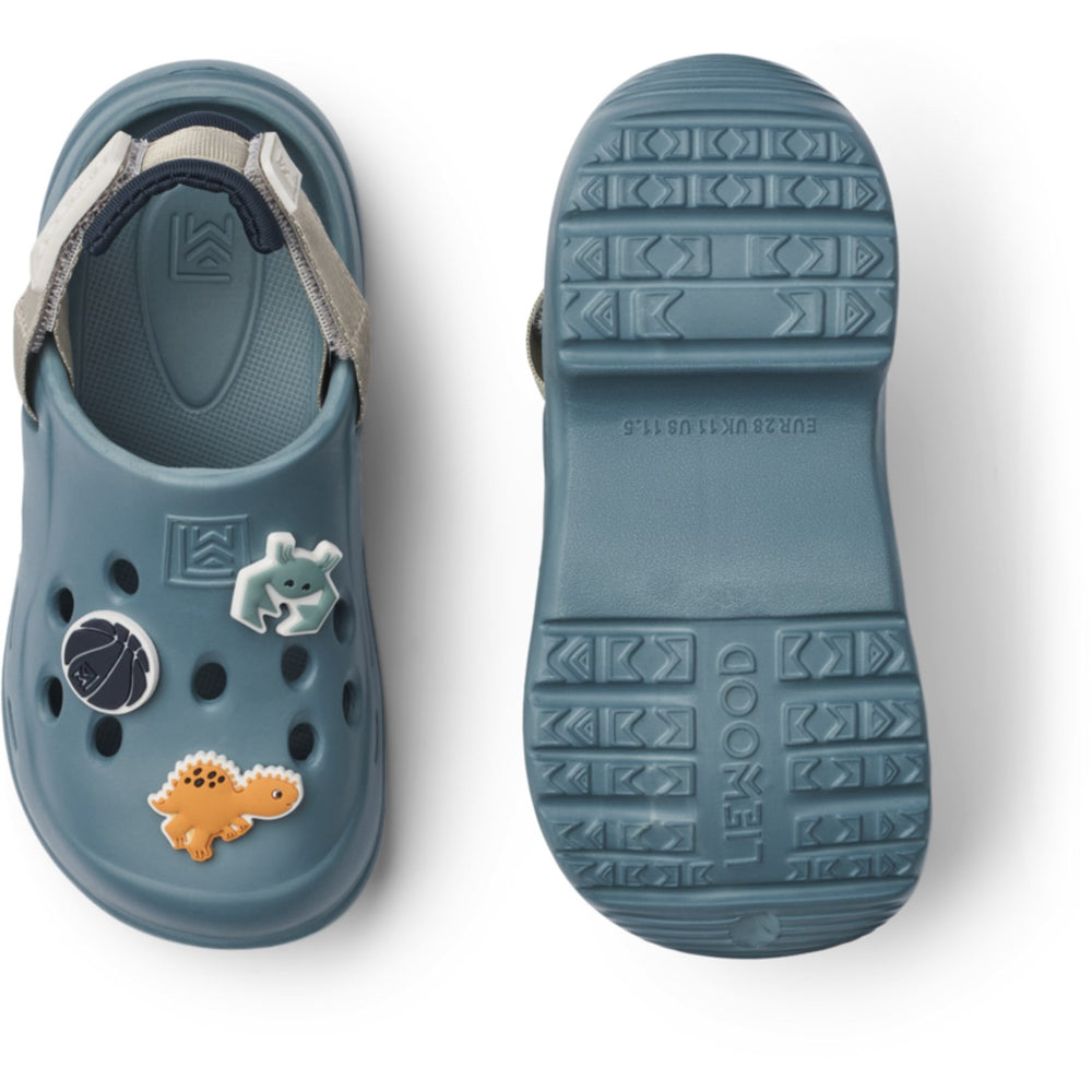 Step into summer with style and comfort in the LIEWOOD Whale Blue Mix Milas Sandal. Perfect for your little one's active days, these sandals feature a chic closed-toe design adorned with playful, interchangeable LIEWOOD charms. Crafted in a refreshing Whale Blue hue with a pattern that sparks joy, these sandals boast an adjustable heel strap for a snug fit. The smart air holes ensure breathability, making them ideal for any adventure. Durable and easy to care for, the Milas Sandal is your child's perfect companion for sunny explorations or seaside outings.