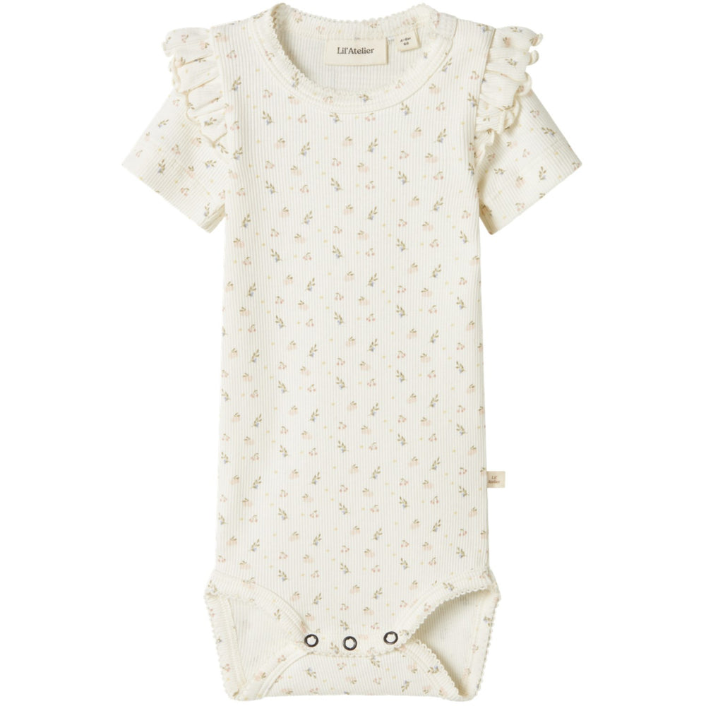 Dress your little one in the delightful Lil'Atelier Coconut Milk Gago Kik Slim Body bodysuit, crafted from soft, stretchy jersey fabric that offers unparalleled comfort and freedom of movement. This charming piece features a round neck, short sleeves, and handy press-stud fastening for easy dressing. Adorned with playful prints and stylish frills, it combines durability with a trendy design. Perfect for active playdates or cozy cuddle times, it ensures your child looks adorable while staying comfy.