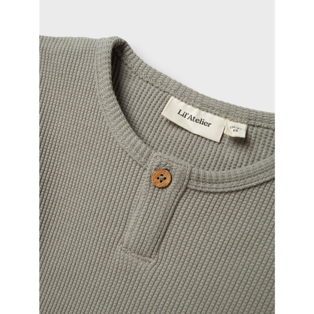 Wrap your little one in the cozy embrace of the Lil'Atelier Forest Fog Diem T-Shirt, expertly crafted for both comfort and style. Made from jersey, this top is wonderfully soft and stretchy, ensuring your child can move freely. It features classic grandad neck and chic short sleeves accentuated with button fastening. The regular fit, coupled with thoughtful details like side slits and a subtle label, enhance wearability. Perfectly blending durability with easy care, this delightful t-shirt is a must-have for your child's wardrobe, promising to keep them comfy and stylish, season after season.