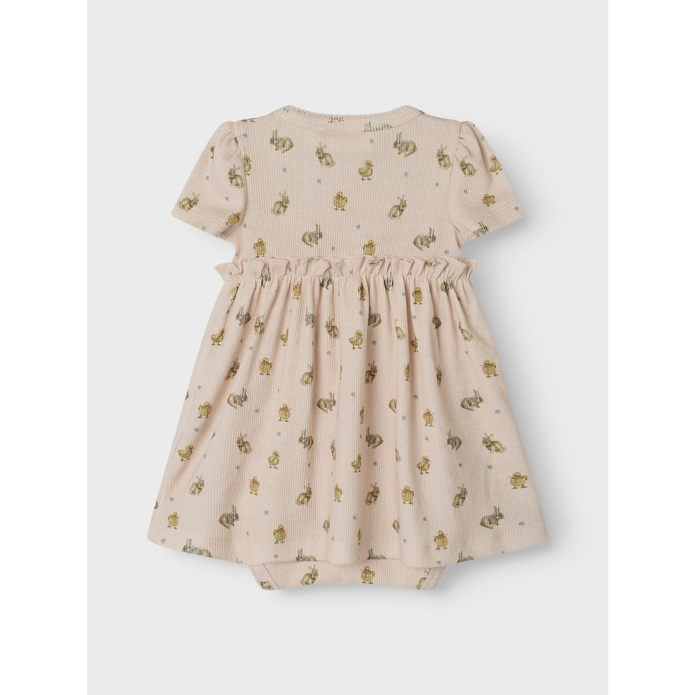 Introducing the Lil'Atelier Morganite Lavo Kin Body Dress, a charming addition to your child's wardrobe that combines style, comfort, and versatility. Crafted from soft, stretchy jersey, this dress offers a gentle touch on your child's skin while ensuring ample freedom of movement, making it perfect for any activity. Featuring a classic grandad neck and cute short sleeves, this dress is detailed with stylish ruffles and a delightful all-over print. The ease of dressing is guaranteed with both button and press stud fastenings. Designed for regular fit, it prioritizes comfort without compromising on style. Perfect for versatile dressing through any season or occasion, it is easy to care for and durable, though we caution to keep it away from fire. Your little one will look adorable and feel incredibly comfortable, whether playing, resting, or attending gatherings.