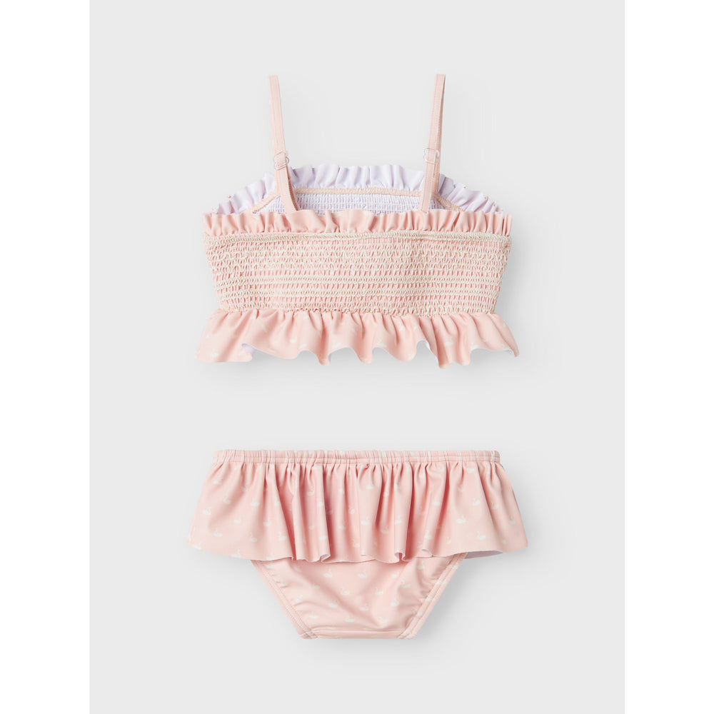 Introduce your little one to summer fun with the Lil'Atelier Peach Whip Fiona Mar Bikini! This chic bikini set features a charming all-over print and delightful frills, enhancing its trendy style. Crafted with a cozy polyester lining, it ensures a comfortable and non-transparent fit. Perfect for both beach adventures and pool play, this durable and stylish swimwear promotes endless fun and confidence in every splash.