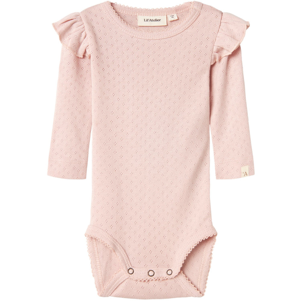 Discover the charm of Lil'Atelier's Peach Whip Rachel Nin Slim Body bodysuit, ideal for crafting everyday stylish and cozy attire for your child. Fashioned from lightweight, stretchy jersey, it offers both a soft touch and the flexibility necessary for unfettered play. This bodysuit features a round neck, long sleeves adorned with delightful frills, and dual press stud fastenings at the shoulder and bottom for easy dressing. Adorned in soothing peach tones and subtle labels for a dash of elegance, it combines function with fashion seamlessly. Care tips: Keep away from fire and follow care label instructions to maintain its durability and appearance. Perfect for layering or wearing alone, it promises comfort and style in every wear.