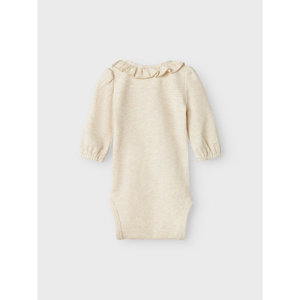 Dress your little one in the Lil'Atelier Turtledove Melange Darla Slim Body, crafted from soft, stretchy jersey for ultimate comfort. This charming bodysuit features long sleeves, a round neck, and adorable frill details for a stylish look. Equipped with press stud fastenings at the shoulder and bottom, it promises easy dressing and a secure fit. Ideal for both playtime and naptime, this bodysuit combines durability with a trendy design, ensuring your child looks great while staying comfy. Perfect for everyday wear, it's a must-have in your child's wardrobe.
