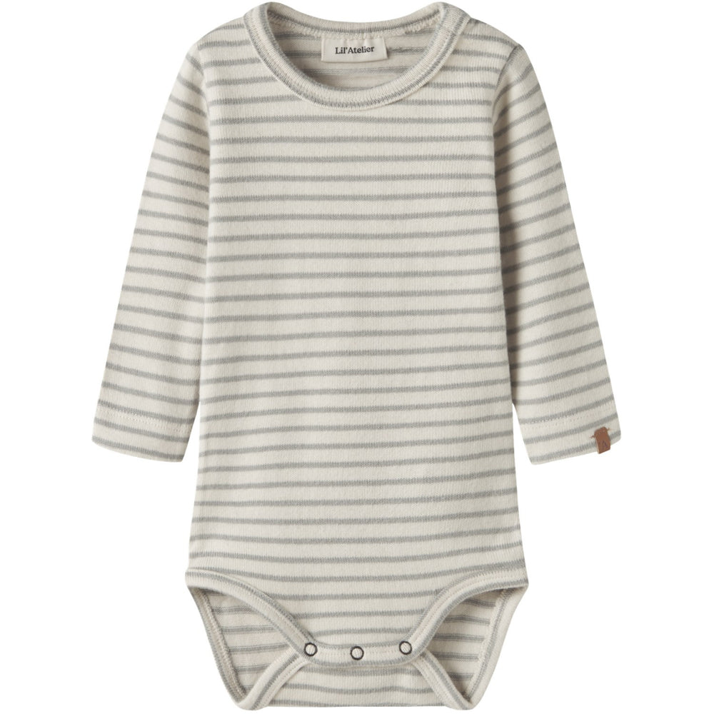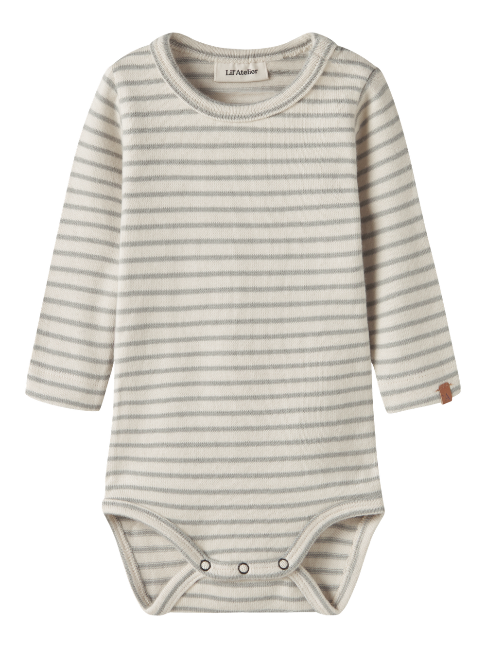 Introducing the Lil'Atelier Turtledove Pigeon Nbmthoro Keo Ls Slim Body, a bodysuit that combines style with practicality for your little one. Crafted from soft, stretchy jersey, this bodysuit ensures comfort all day and freedom to move, perfect for explorative play. Featuring a classic round neck, long sleeves, and convenient press stud fastening for easy dressing, this body suit is a must-have. Available in a soothing, neutral color with a clean design, it's as stylish as it is functional. Be sure to keep it away from fire and cherish the easy care of this essential piece. Ideal for everyday wear, it allows your child to look good and feel great.