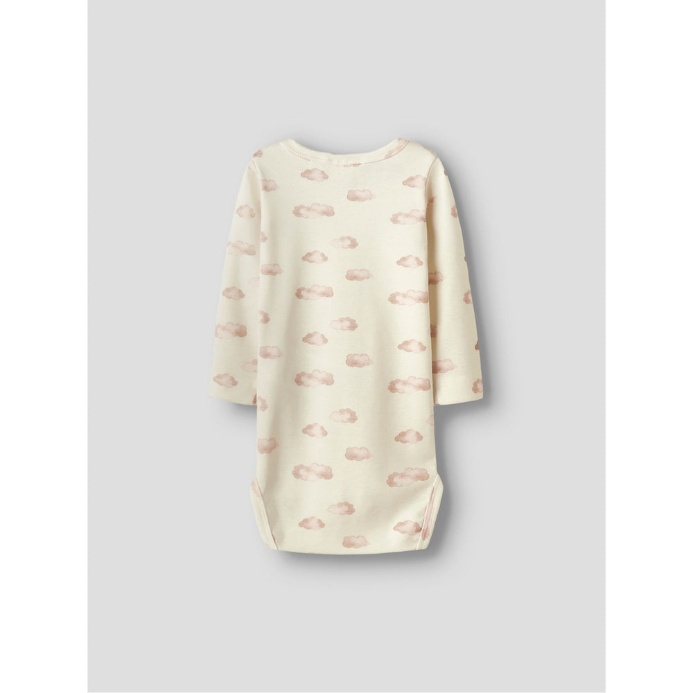 Dress your little one in the delightful Lil'Atelier Turtledove Pink Cloud Nbnlayo Kim Ls Slim Body bodysuit for a charming and stylish ensemble. Crafted from soft jersey fabric, this bodysuit ensures a gentle touch on your child's skin while providing ample stretch for playful movements. Featuring a cozy round neck and long sleeves, it's ideal for any season. The adorable pink cloud print dances across the fabric, adding a splash of fun to this essential wardrobe piece. Effortlessly secure with press stud fastenings for quick changes. Note: Always keep away from fire and follow care labels to maintain its lovely appearance. Perfect for both playtime and downtime, this bodysuit combines comfort with cuteness.