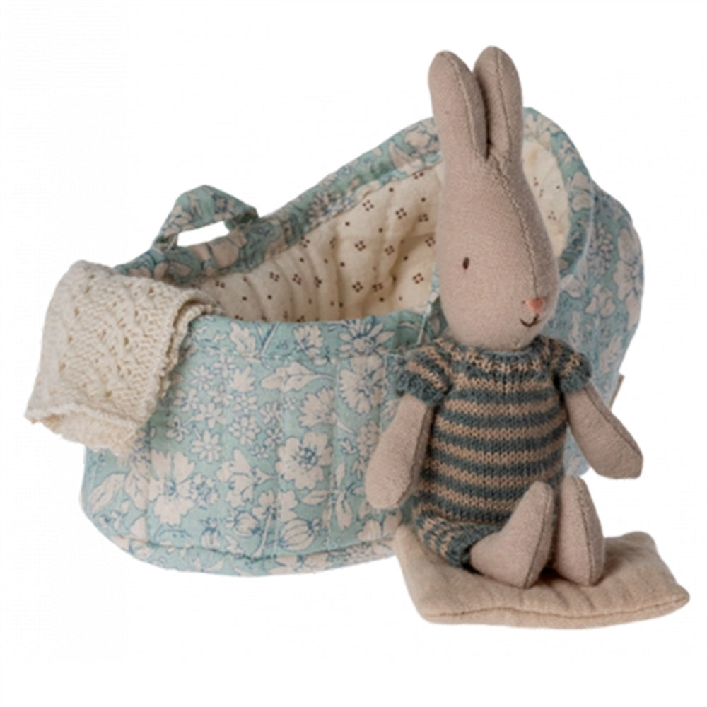 Discover the charm of the Maileg Kanin Micro Rabbit in a Petrol Carrying Cot, a delightful addition to any child's toy collection. Crafted with safety in mind, this rag doll is perfect for infants, providing educational enrichment through interactive play. It is conveniently sized for easy portability and simple to maintain, ensuring lasting enjoyment and endless imaginative adventures. Ideal for children eager to explore and learn.