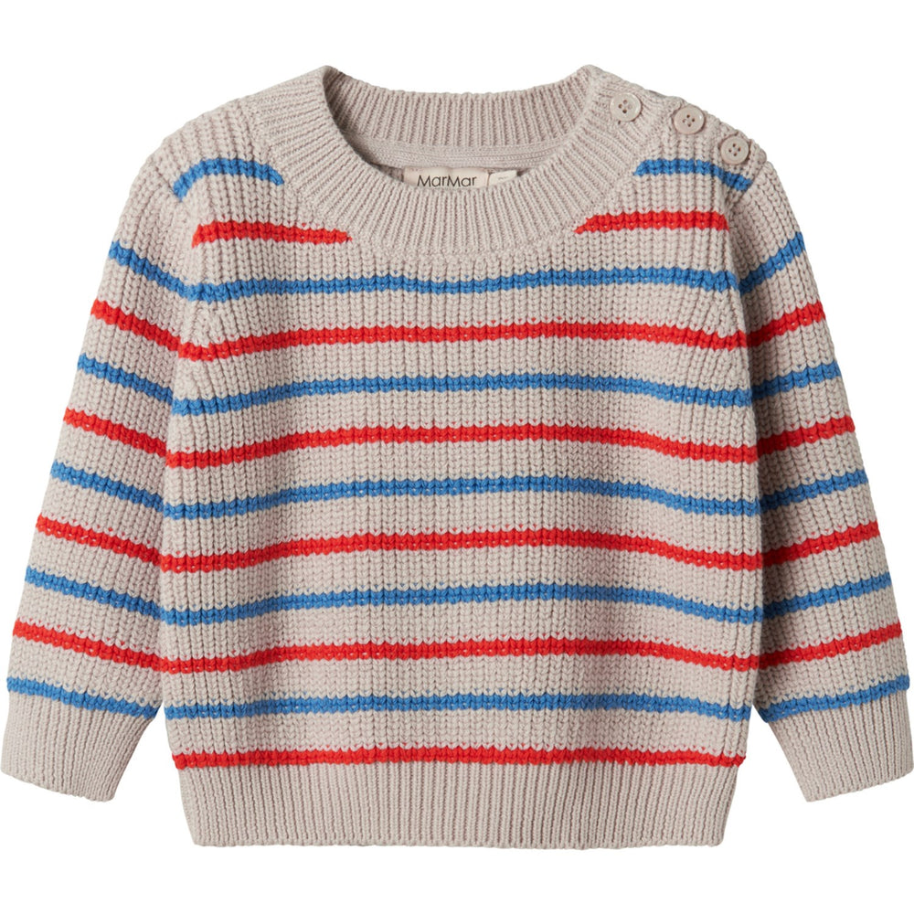 Discover the charming MarMar Cotton Knit EA Stripe Tomato Mix Stripe Teno B Knitted Blouse, perfect for keeping your little ones cozy and stylish. Crafted from soft knitted fabric, this blouse features eye-catching striped details and raglan sleeves for easy movement. The round neckline and ribbed edges add a touch of classic style, while the convenient side button closure ensures easy dressing. Ideal for both comfort and style, it's a delightful addition to any child's wardrobe. Materials: 80% Cotton (Organic), 20% Polyamide Washing instructions: Wash by hand