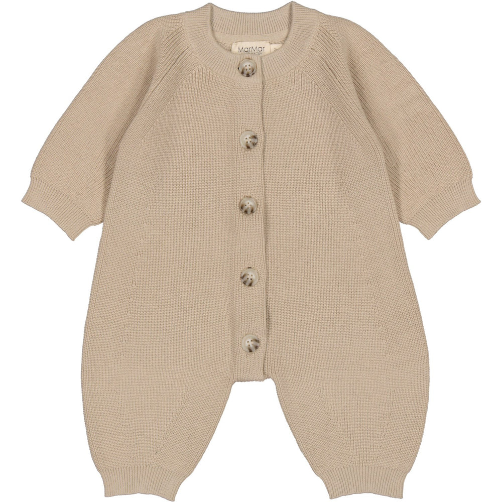 This lovely knitted suit from MarMar is the perfect mix of comfort and style for your toddler. With raglan sleeves and a practical button closure at the front, this one-piece is designed in a classic 100% cotton quality that ensures breathability and softness against sensitive skin. The fine one-piece knit gives the suit a timeless look, making it ideal for both play and rest time. A must-have in every little charmer's wardrobe!