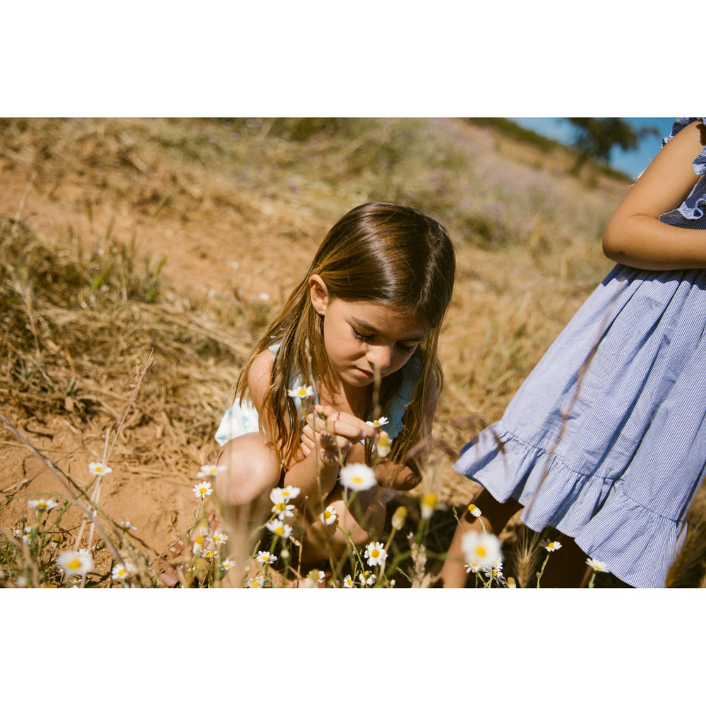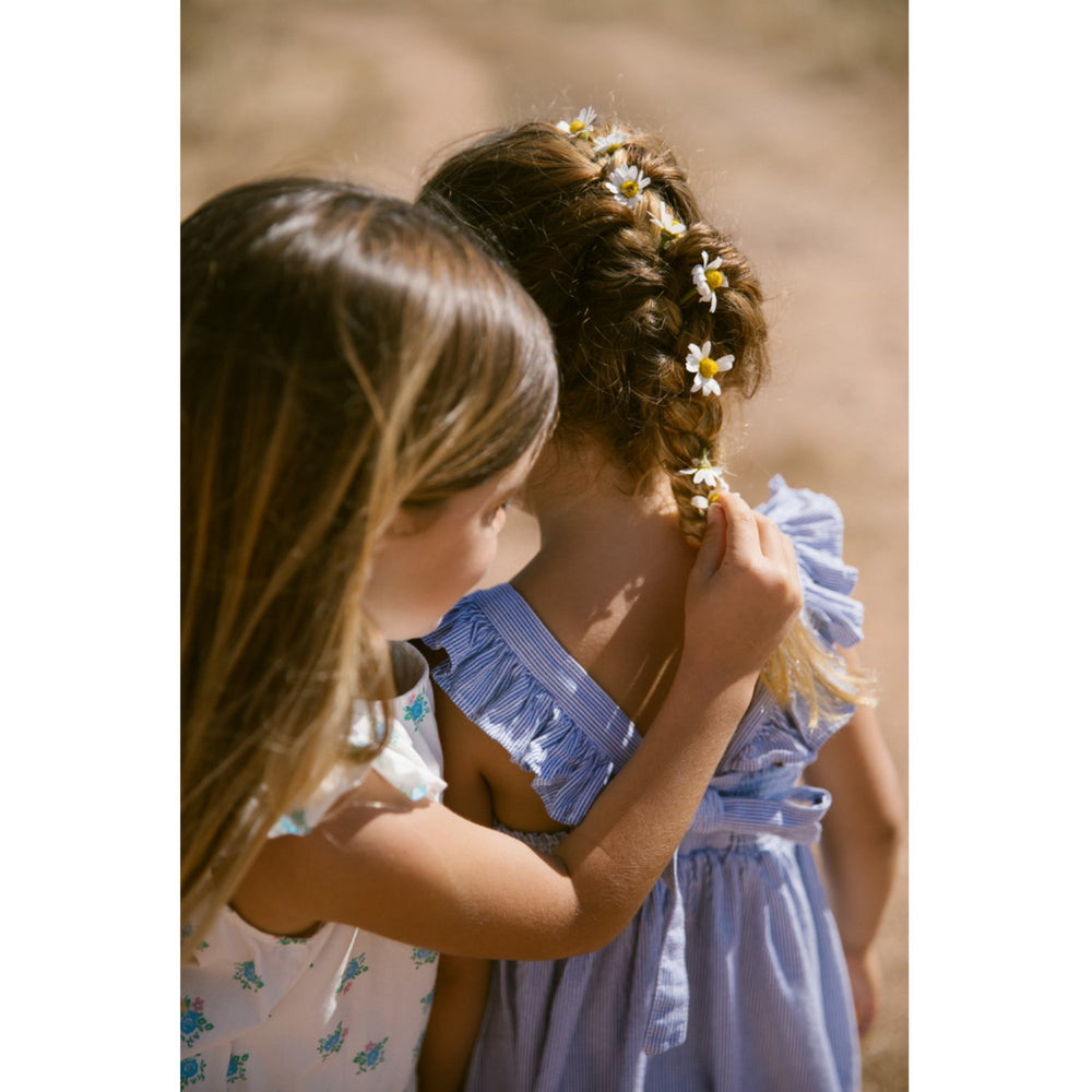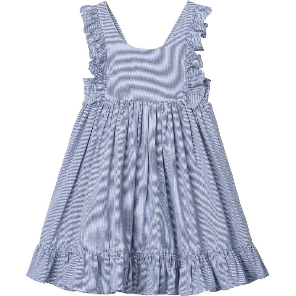 Introducing the delightful MarMar Fine Cotton Navy Stripe Danita Frill Dress, perfect for playful days and special occasions alike. Crafted from soft, breathable cotton, this strap dress features charming frills at the shoulder straps and skirt hem, adding a touch of whimsy to its loose fit design. The navy stripes lend a classic touch, while the above-the-knee length ensures freedom of movement for your little one. Easy to care for and wonderfully comfortable, this dress combines style with practicality, making it a wardrobe must-have for any fashionable child.