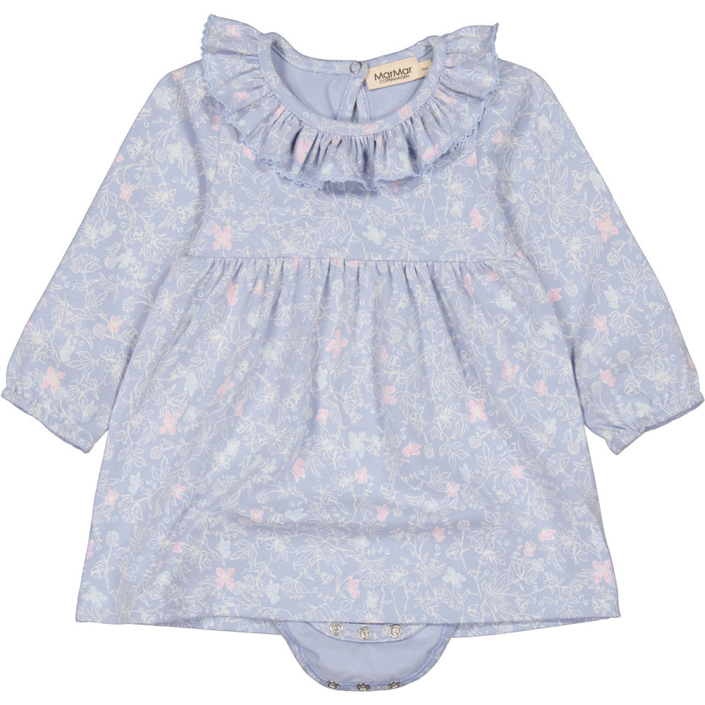 Experience the adventure in the MarMar Jersey Print Butterfly Meadow Raya Dress! This charming piece combines functionality with imagination, perfect for the little explorers. With a practical bodystocking design, long sleeves and a cute collar, the dress ensures all-day comfort. Designed for easy diaper changes with smart snaps both in the back and between the legs. Made from soft jersey with elastane that is both stretchy and breathable. Oeko-tex® certified, which guarantees that the dress is free of harmful chemicals. A dress that keeps both shape and color, even after many adventures!