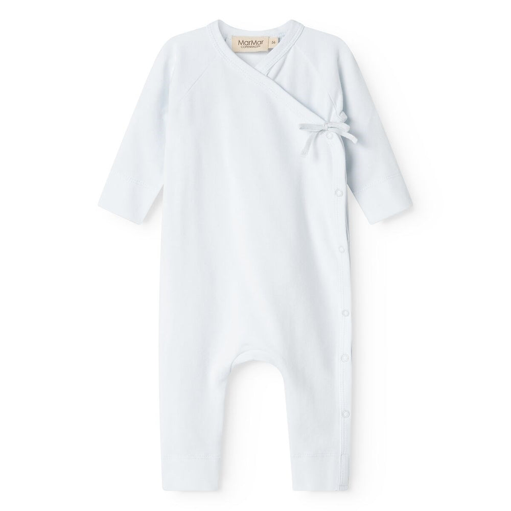 Welcome the newest addition to your family's wardrobe with the MarMar Modal New Born Light Blue Rula Full Body onesie. Designed with care, this long-sleeved wrap romper combines style and comfort. It features soft modal fabric and is adorned with a delicate light blue hue. The practical design includes snap buttons and ribbons for easy dressing, ensuring a snug and secure fit. Perfect for daily wear, this onesie ensures your little one stays cozy and stylish throughout the day. Materials: 47% Modal, 48% Cotton (Organic), 5% Elastane Washing instructions: Wash - Machine wash 40°C , Bleach - Do not bleach , Drying - Do not tumble dry, Ironing - medium, Dry Clean - Dry clean possible Extra: Jersey with elastane, Soft, stretchy and comfortable to wear, High quality that keeps shape and color, Wear it with everything, Oeko-tex® - Tested for harmful chemicals, Modal styles is a favorit since 2008 and is lanched in new colors each season