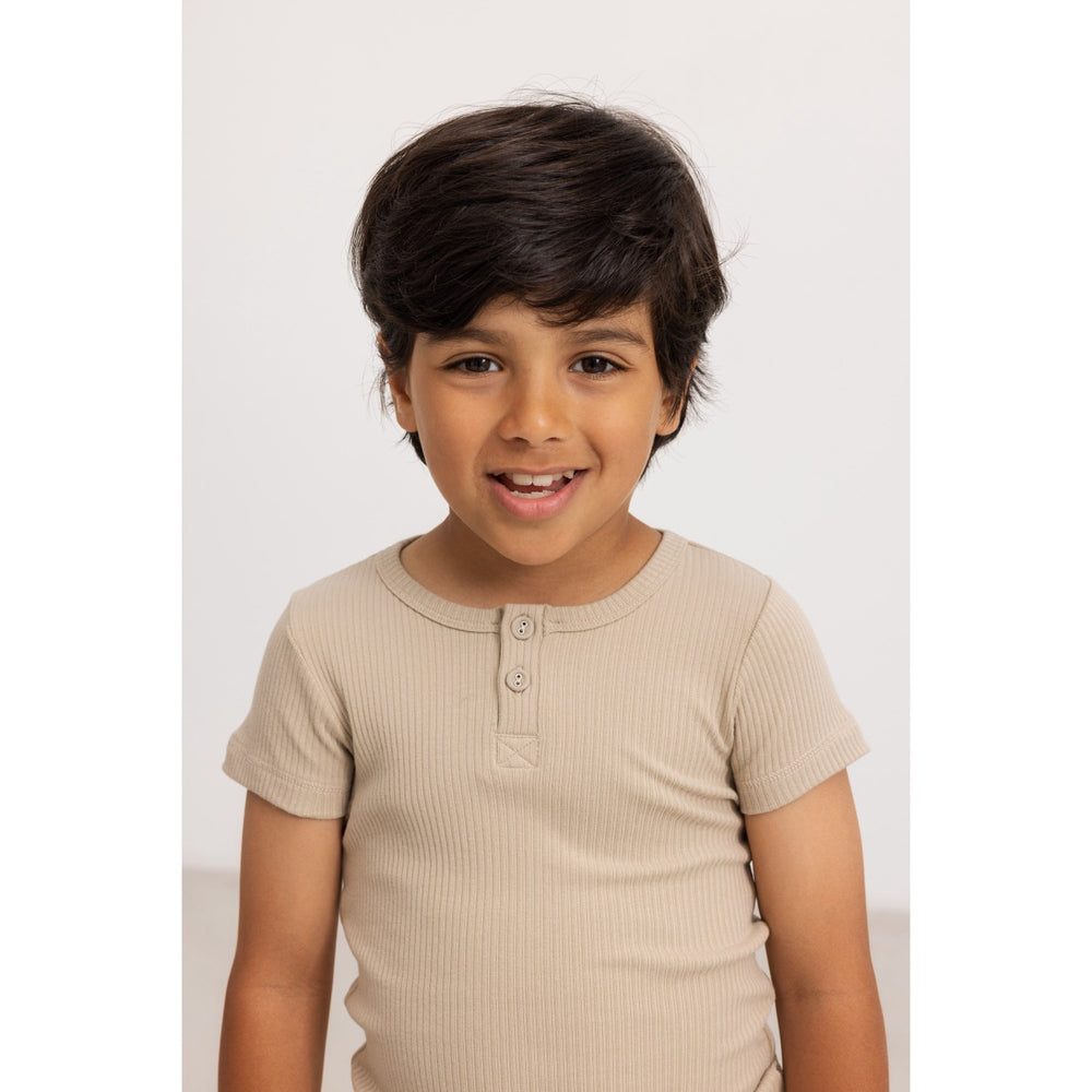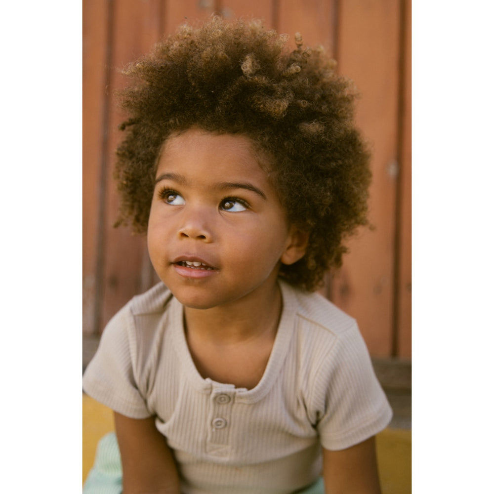 Make sure your little shooting star shines in our MarMar Modal Stone Wall T-shirt! This soft and stretchy short-sleeved t-shirt is designed with a practical placket closure and a comfortable ribbed knit. It keeps its shape and color even after many washes, thanks to its high quality. In addition, it is free of harmful chemicals, confirmed by Oeko-Tex® certification. With new colors every season, this classic is quickly becoming a favorite choice in the wardrobe!