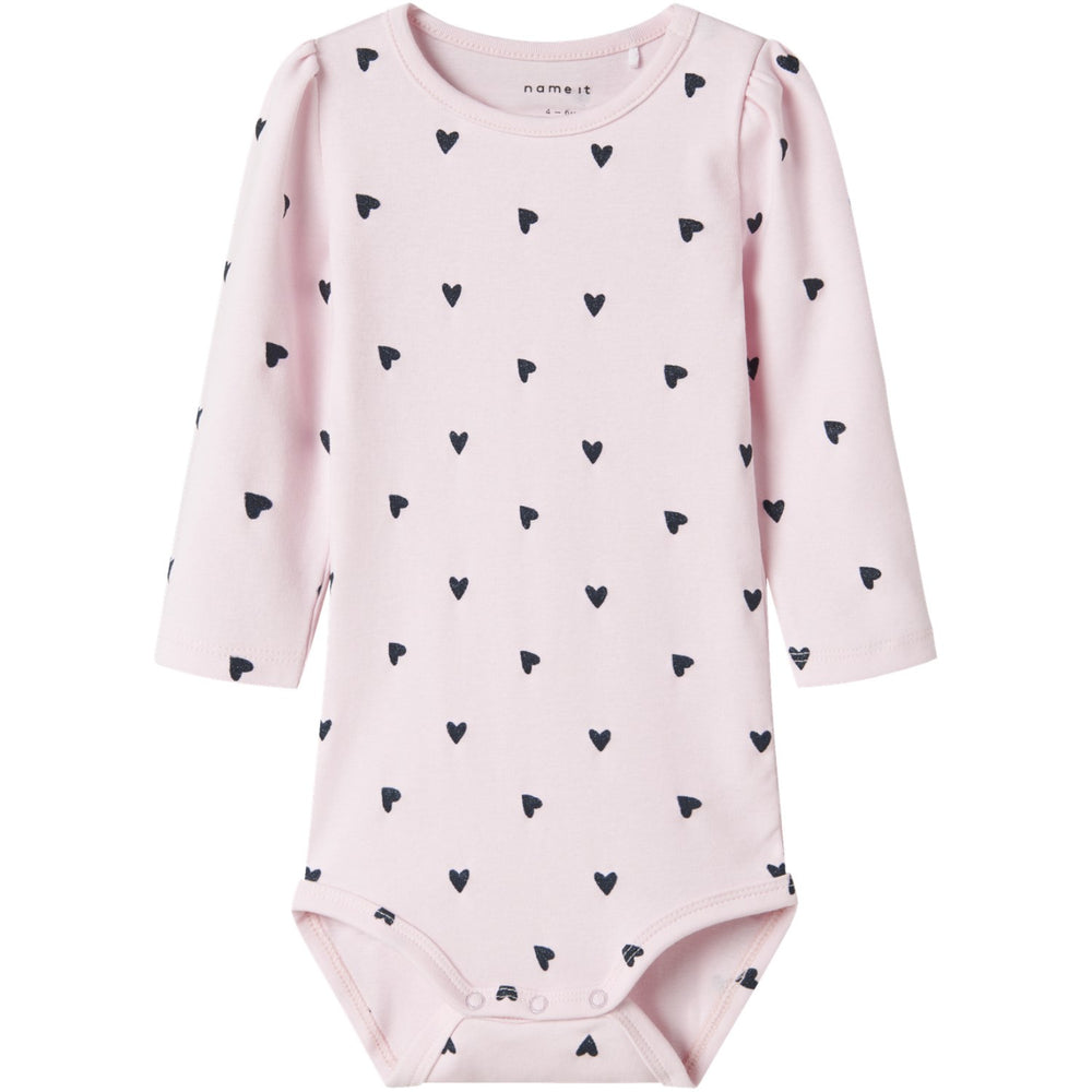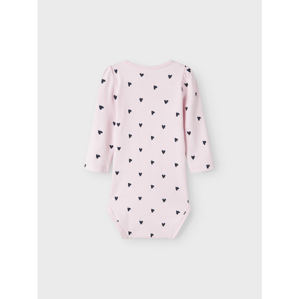 Introducing the Name It Ballerina Dheart Body, a delightful addition to your little one's wardrobe for all-year-round comfort. Crafted from cozy rib knit material with excellent elasticity, this bodysuit features a charming striped pattern that adds a touch of timeless style. It is designed with long sleeves, a comfortable round neck, and convenient press stud fastenings at the shoulder and bottom to simplify dressing and diaper changes. Adorned with an endearing print that repeats across the entire surface, this garment combines function with fashion. Plus, it provides peace of mind with its fire safety warning. Perfect for daily wear, it ensures your child stays comfy and stylish throughout the day.
