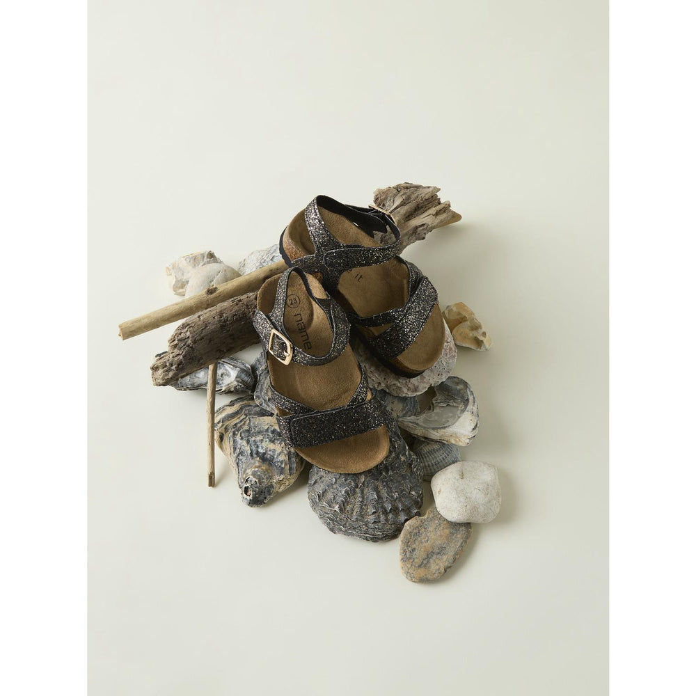 Introducing the Name It Black Glitter Fiona Sandal - a dazzling choice for your little one's feet! These sandals feature a sparkling black glitter design and an open toe to keep little toes cool. They're crafted with a durable EVA sole and secure with a convenient buckle fastening for a snug fit. Perfect for playdates or family outings, these sandals combine style with comfort and ease of care, ensuring your child looks charming while they play. Ideal for kids who love a bit of sparkle!