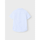 Dress your little one to impress with the Name It Campanula Newsa Shirt Noos, the perfect choice for any celebration. This classic oxford shirt features a textured two-tone design, embellished with charming embroidery. It boasts a smart shirt collar, easy button fastenings, and short sleeves for comfort. Designed with a regular fit, it provides ample flexibility for all-day wear. Easy to care for, this shirt remains a stylish and comfortable pick for all festive activities.