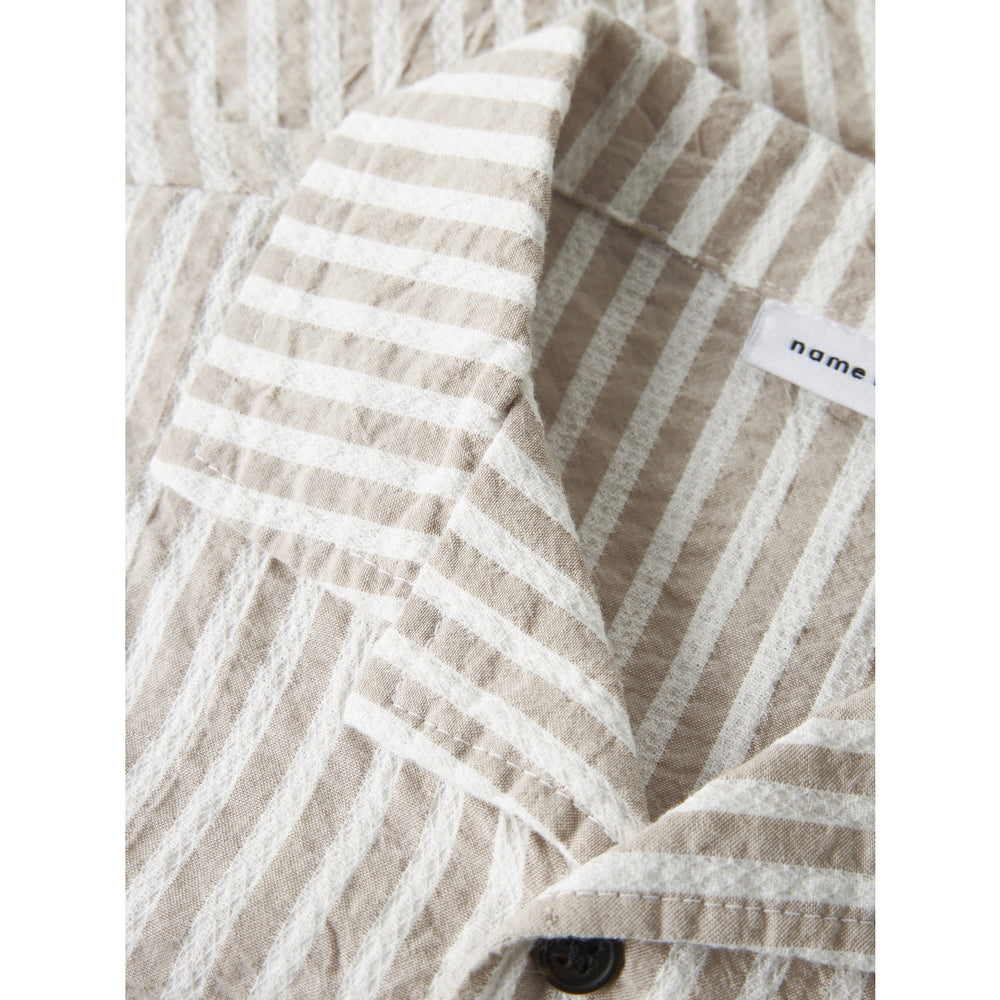 Dress your little one in style with the Name It Chateau Gray Cloud Dancer Nmmfedenis Ss Shirt, featuring an exquisite criss-cross woven fabric that's as stylish as it is comfortable. This shirt comes in a charming print design repeated throughout, adding a touch of whimsy to its classic short-sleeve and button-up structure. The regular fit ensures easy wearability, while the fold-up cuffs add a dash of flair. Perfect for playdates or family gatherings, it combines durability and easy care, making it an essential addition to your child's wardrobe. Closure: Button Fit: Regular Materials: 99% Cotton - Organic, 1% Elastane Materials and care: Wash with similar colors. Dark colours to be washed separately Washing instructions: Maximum Washing Temperature 30°C - Gentle Process