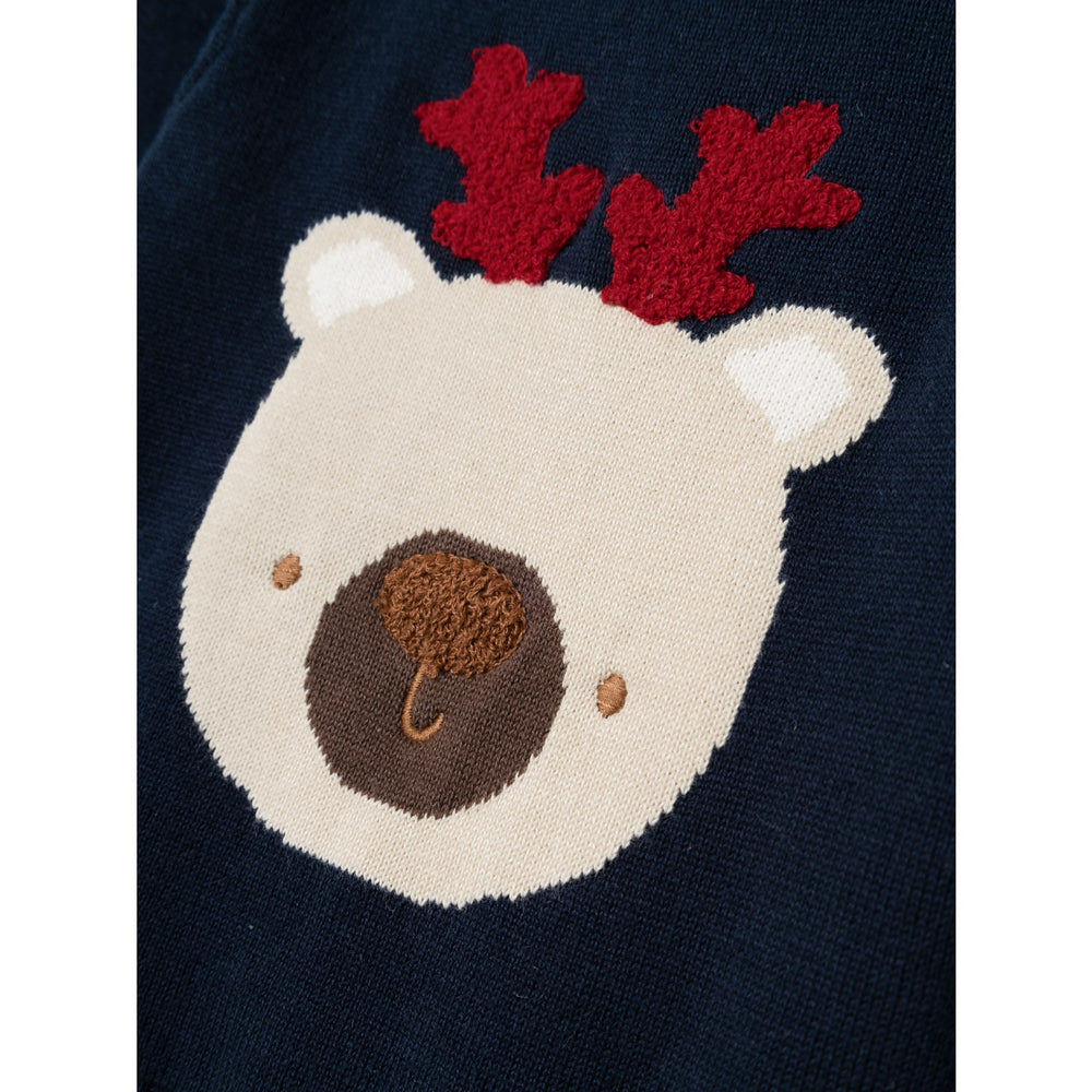 Discover the charm of the Name It Dark Sapphire Rujul Knit Blouse, a delightful addition to your child's wardrobe this festive season. Crafted from a beautifully knitted jacquard, this pullover boasts a detailed pattern that enhances its structured texture and timeless appeal. The dark sapphire hue, embellished with playful embroidery, accentuates a joyful and festive spirit, perfect for celebrating Christmastime.