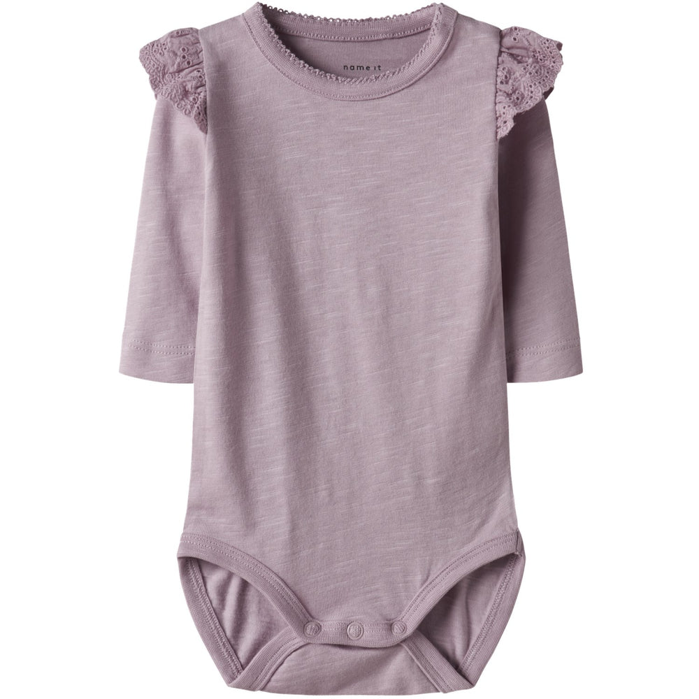 Introduce your little one to adorable comfort with the Name It Dawn Pink Nbfbrianne Ls Body. Crafted from soft, stretchy jersey, this bodysuit ensures ease of movement and a gentle touch on your child's skin. Featuring a round neck, long sleeves with lace details, and convenient press stud fastenings for easy dressing. The charming pink hue and delightful frill embellishments add a playful touch. Perfect for year-round wear, this bodysuit combines style, functionality, and safety, keeping your child both stylish and snug. Materials: 50% Cotton - Organic, 50% Modal Materials and care: Wash with similar colors Washing instructions: Maximum Washing Temperature 40°C - Normal Process