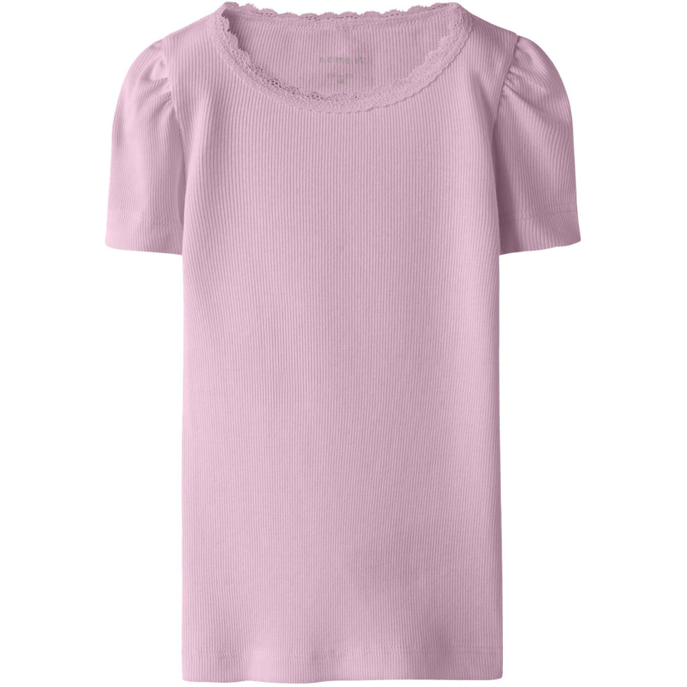 Dress your little one in the Name It Fragrant Lilac Nmfkab Ss Top, an essential T-shirt that blends style with comfort. Crafted from rib knit with a vertical striped pattern, this top offers excellent elasticity and a soft feel, ensuring a comfortable fit all day long. Featuring charming puff sleeves with delicate lace details, a classic round neck, and a regular fit, it’s perfect for both fun playdates and festive occasions. The timeless design and soothing lilac color make it a versatile addition to any young wardrobe. Ideal for effortless care, this T-shirt keeps looking great wash after wash. Fit: Regular Materials: 57% Cotton - Organic, 38% Modal, 5% Elastane Materials and care: Wash with similar colors Washing instructions: Maximum Washing Temperature 40°C - Normal Process-