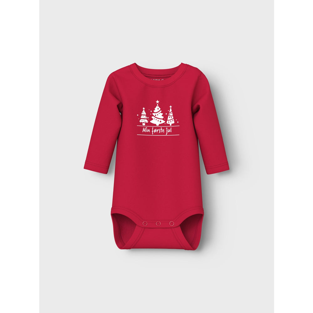 Dress your little one in the spirit of the season with the Name It Jester Red Jul Nbnrajul Ls Body. This charming bodysuit features a bright festive design that captures the joy of Christmas. Crafted from soft, stretchy jersey material, it ensures comfort and flexibility for all-day wear. The round neck and long sleeves offer cozy coverage, while the press stud fastening makes dressing quick and easy. Perfect for holiday gatherings, this bodysuit not only looks adorable but is also practical—just remember to keep it away from fire. Give your child the gift of comfort and Christmas cheer with this delightful outfit. Closure: Press Stud Materials: 95% Cotton - Organic, 5% Elastane Materials and care: Wash with similar colors. Wash and iron inside out Washing instructions: Maximum Washing Temperature 40°C - Normal Process Extra: The main material in this product contains a minimum of 50% organic cotton. Organic cotton is grown without the use of harmful chemicals. Organic cotton farming protects natural resources and biodiversity.