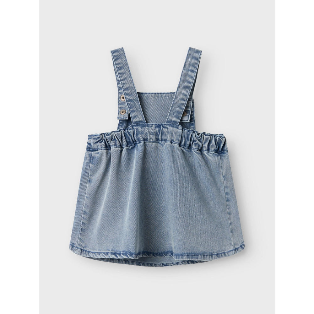 Introducing the Name It Light Blue Denim Felia Skirtall, an on-trend addition to your child's wardrobe. Crafted from durable denim, this skirtall features a press stud fastening, adjustable waist for a perfect fit, and showcases a stylish heavy abrasion finish. Its vibrant light blue color adds a cheerful touch, enhancing its modern appeal. Ideal for both playdates and school, this skirtall combines comfort with cool, casual flair. Note: Keep away from fire.
